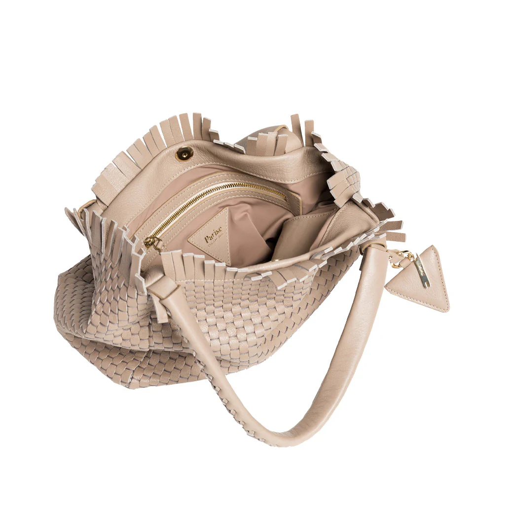 Le borse Parise sono uniche: sono realizzate intrecciando la pelle con antichi telai in legno di Venezia del XVIII secolo. Il risultato sono borse leggere e morbide di ottima qualità.