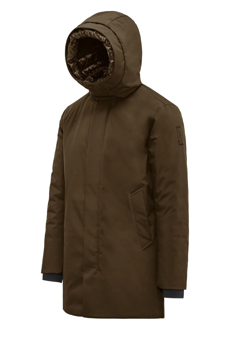 Il parka Aberdeen presenta un cappuccio fisso sagomato che protegge testa e collo dal vento. La chiusura con zip e bottoni a pressione crea una doppia barriera contro gli agenti atmosferici. Le tasche esterne sono pratiche per custodire oggetti e scaldare le mani grazie all’imbottitura. Le linee essenziali e il design minimal rendono la giacca Aberdeen adatta a qualsiasi occassone, offre una soluzione versatile e funzionale per l’uomo che cerca stile e funzionalità.