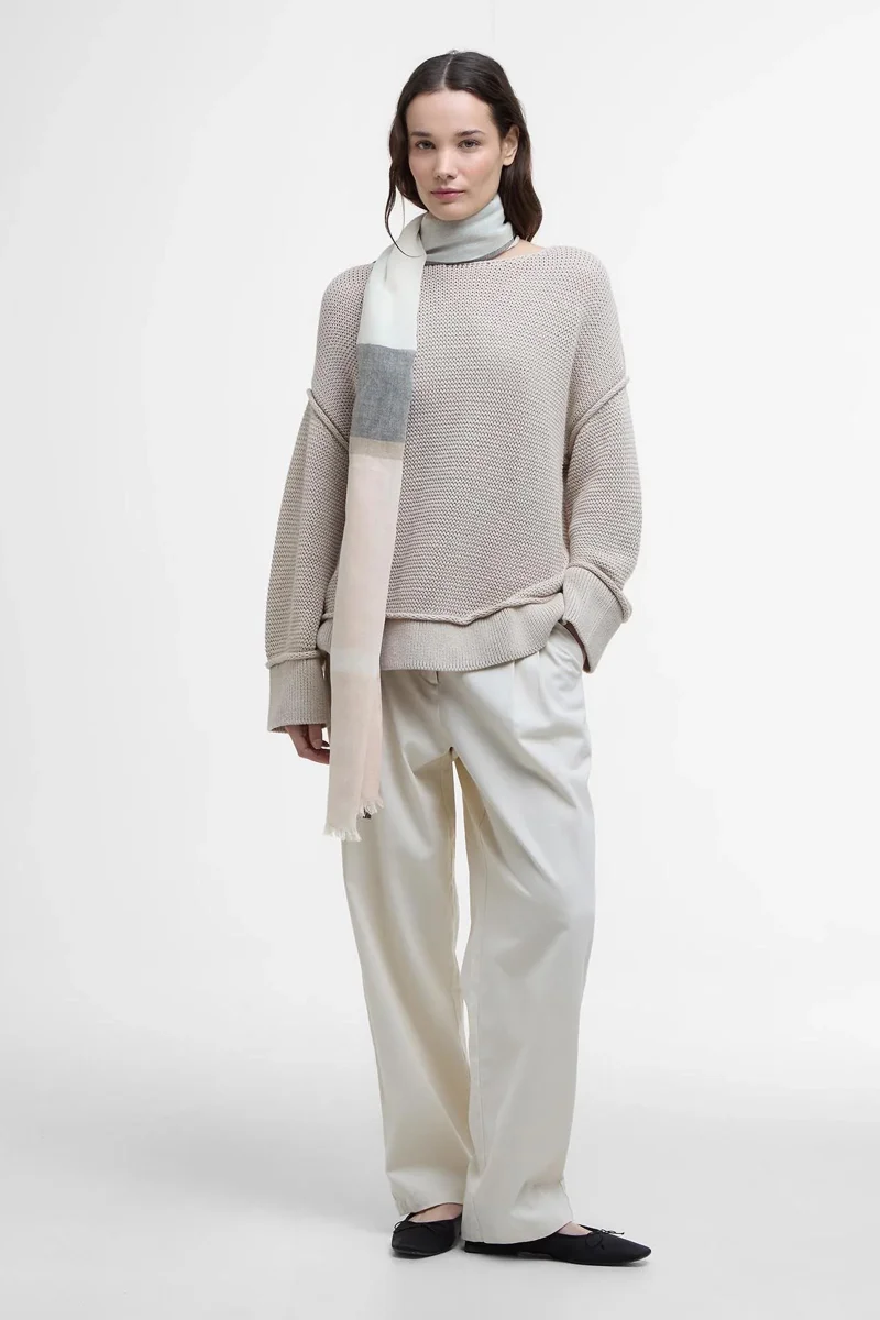 Caratterizzata dall’inconfondibile tartan di Barbour, declinato in formato maxi, questa leggera sciarpa realizzata in lussuoso misto cotone e lino è rifinita con delicate frange sull’orlo. Composizione: 80% COTONE 20% LINO