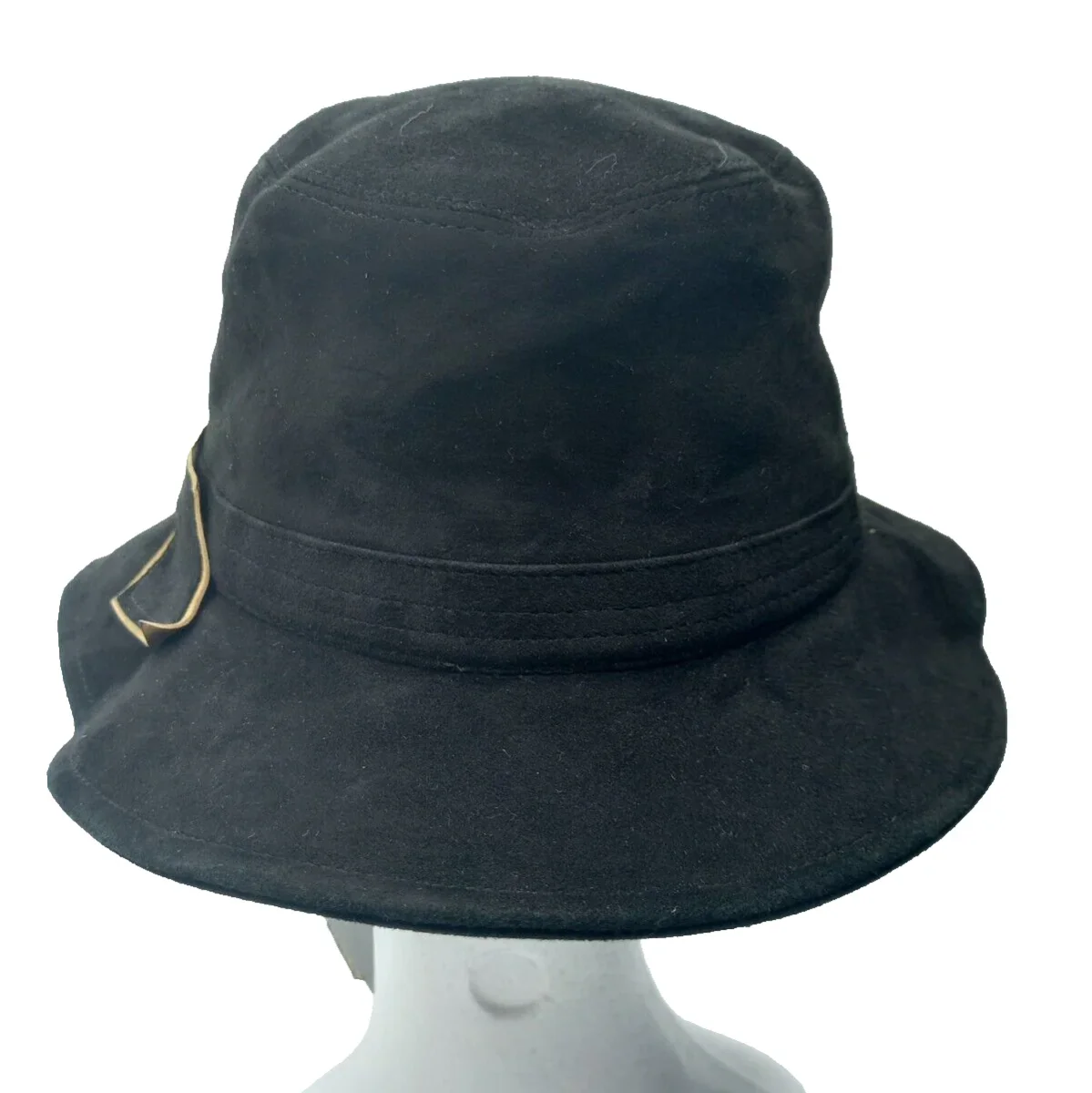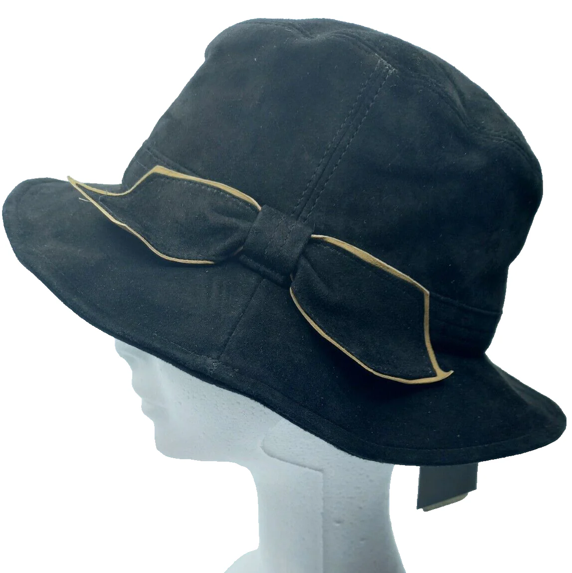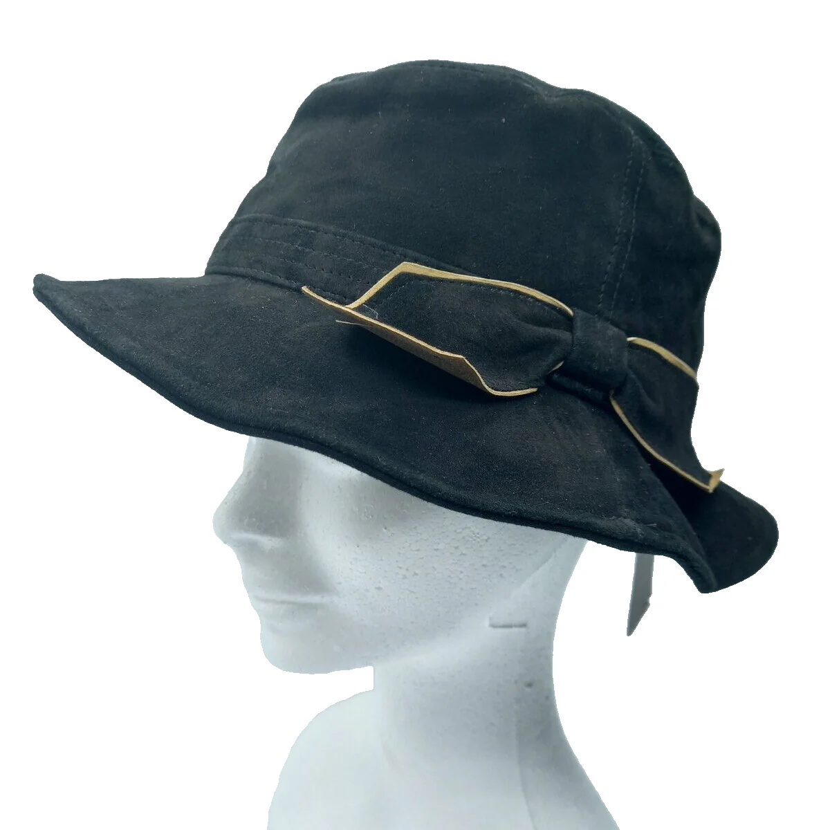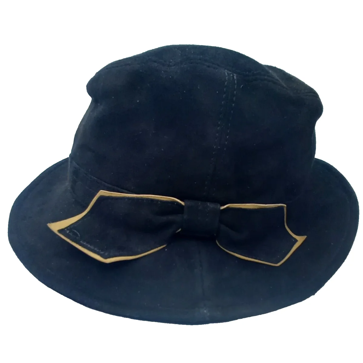 Cappello pescatore in vera pelle scamosciata da donna Colore nero da indossare con fiocco laterale o posteriore.
