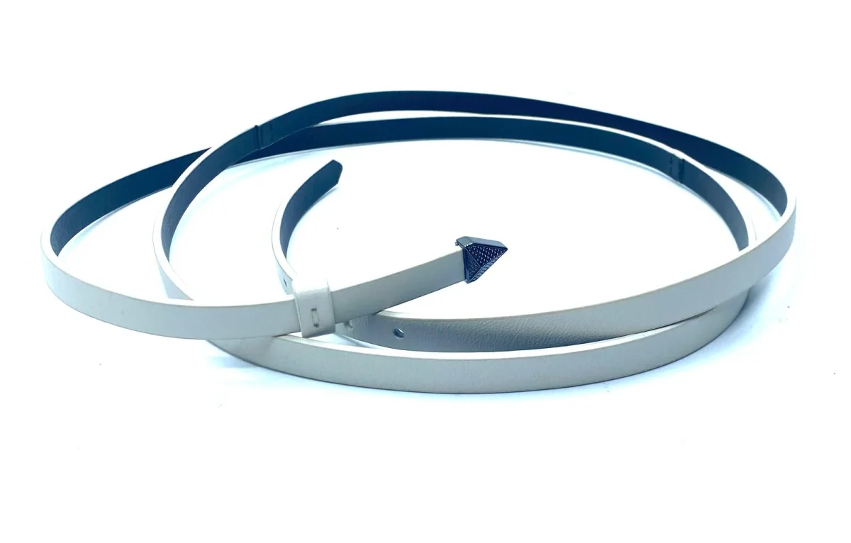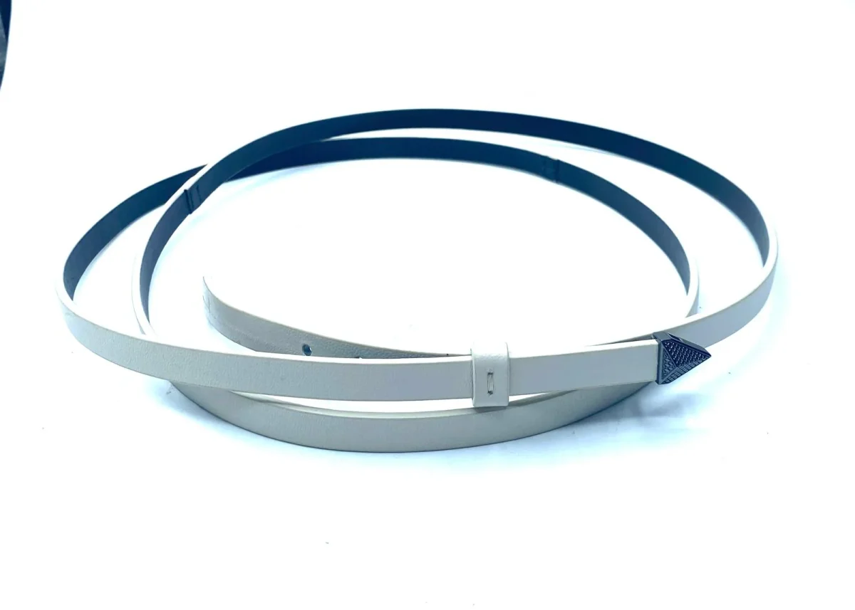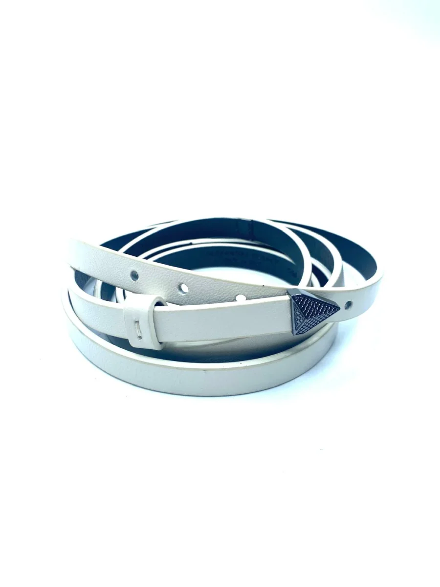 Bellissima cintura doppio giro da donna in vera pelle di vitello liscia color crema con chiusura a spillo decorata. Da indossare doppia è incrociata.