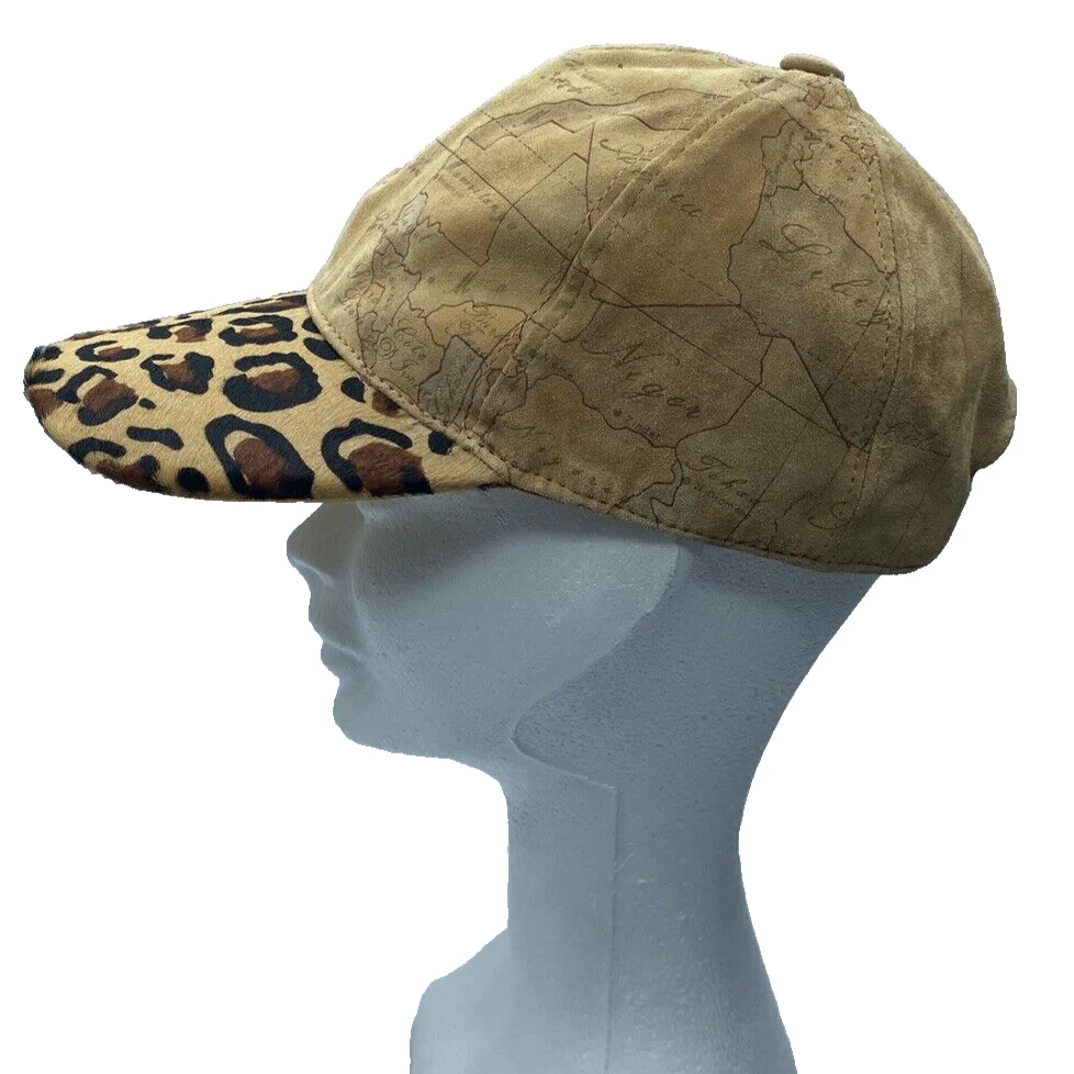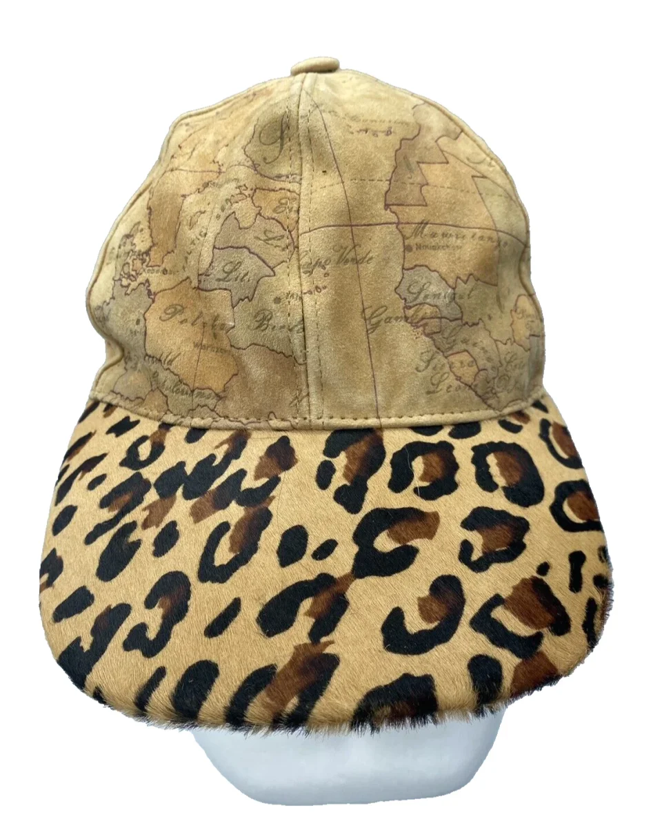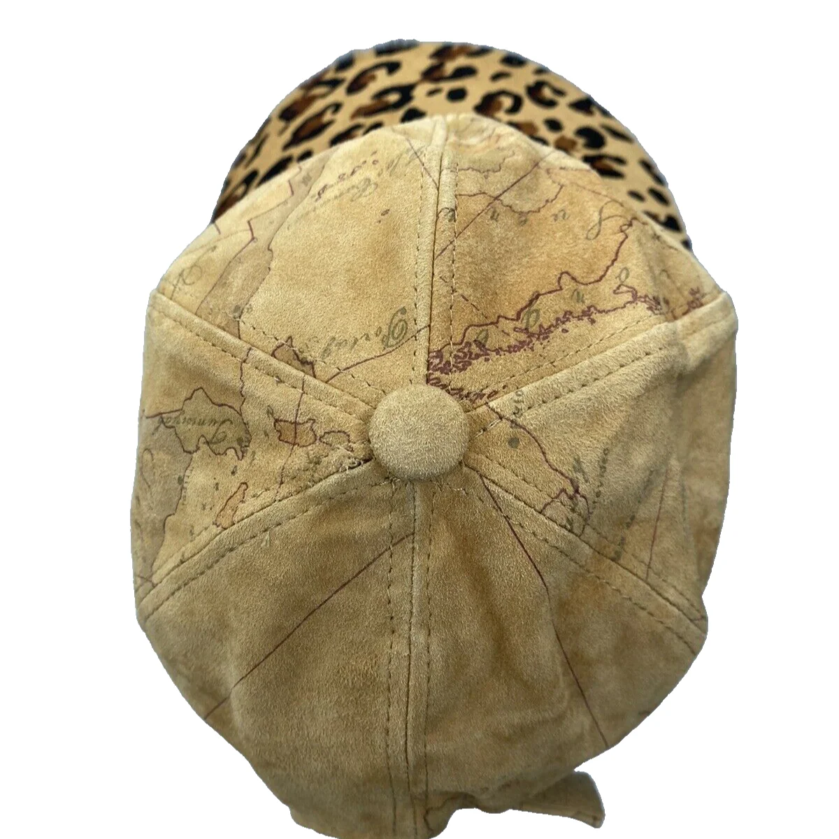 Il berretto ha la visiera maculata e interno visiera in pelle dorata. sopra la stampa è Geo classic con la mappa classica