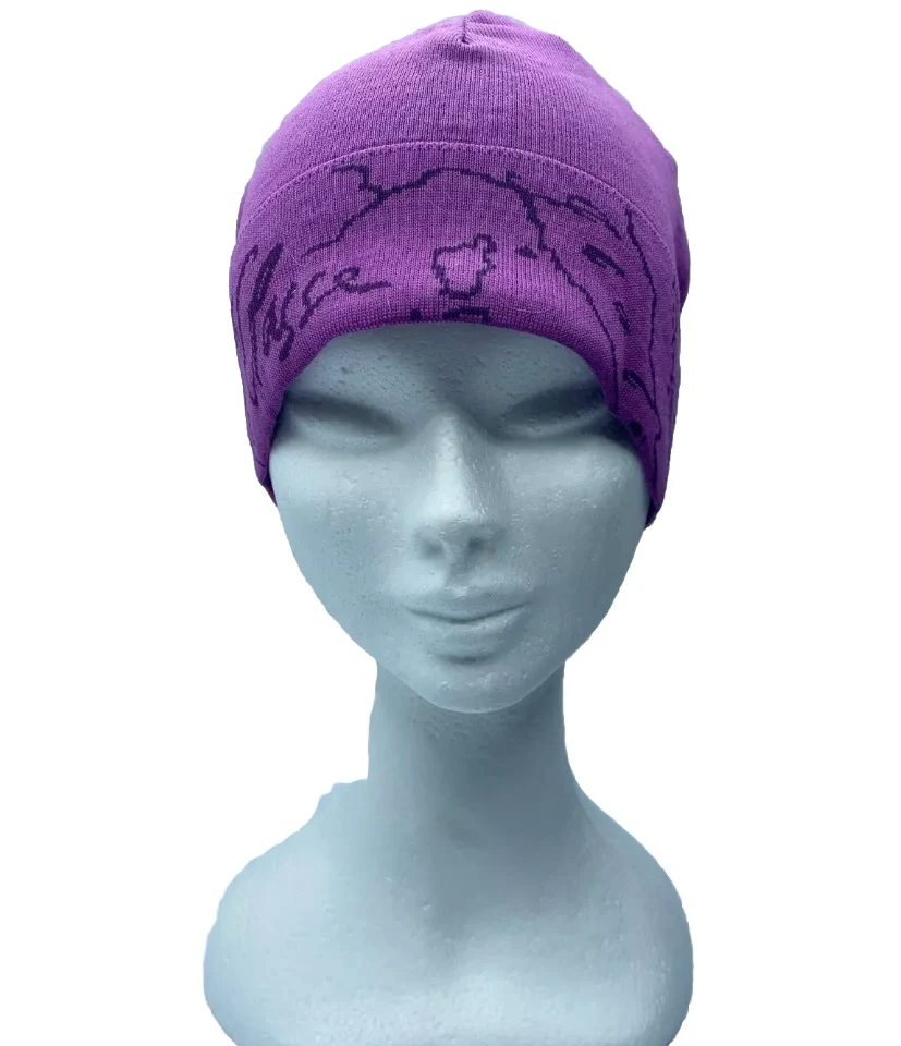 Cuffia unisex Colore lilla Il berretto vi terrà al caldo nelle giornate più fredde.il logo con cartina geografica è intarsiato in tonalità a contrasto sul risvolto per completare l’emblema con una nota di immediata riconoscibilità Taglia Unica Materiale 100 % LANA Made in Italy