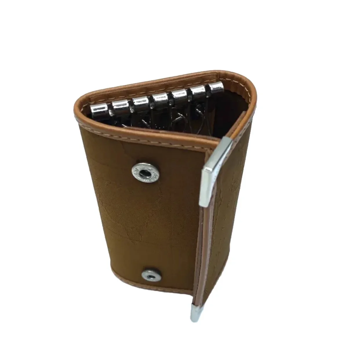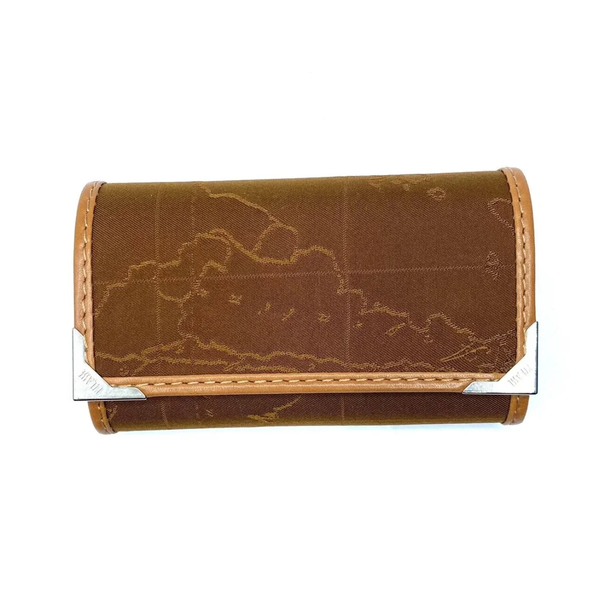 Astuccio portachiavi in tessuto stampato geo caramel con cartina geografica con sei ganci portachiavi, dettagli in pelle di vitello. Logo impresso a caldo Ideale per custodire le chiavi in borsa è perfetto come idea regalo. Chiusura con due bottoni a pressione Portachiavi elegante e femminile. Completo di scatola Made in Italy