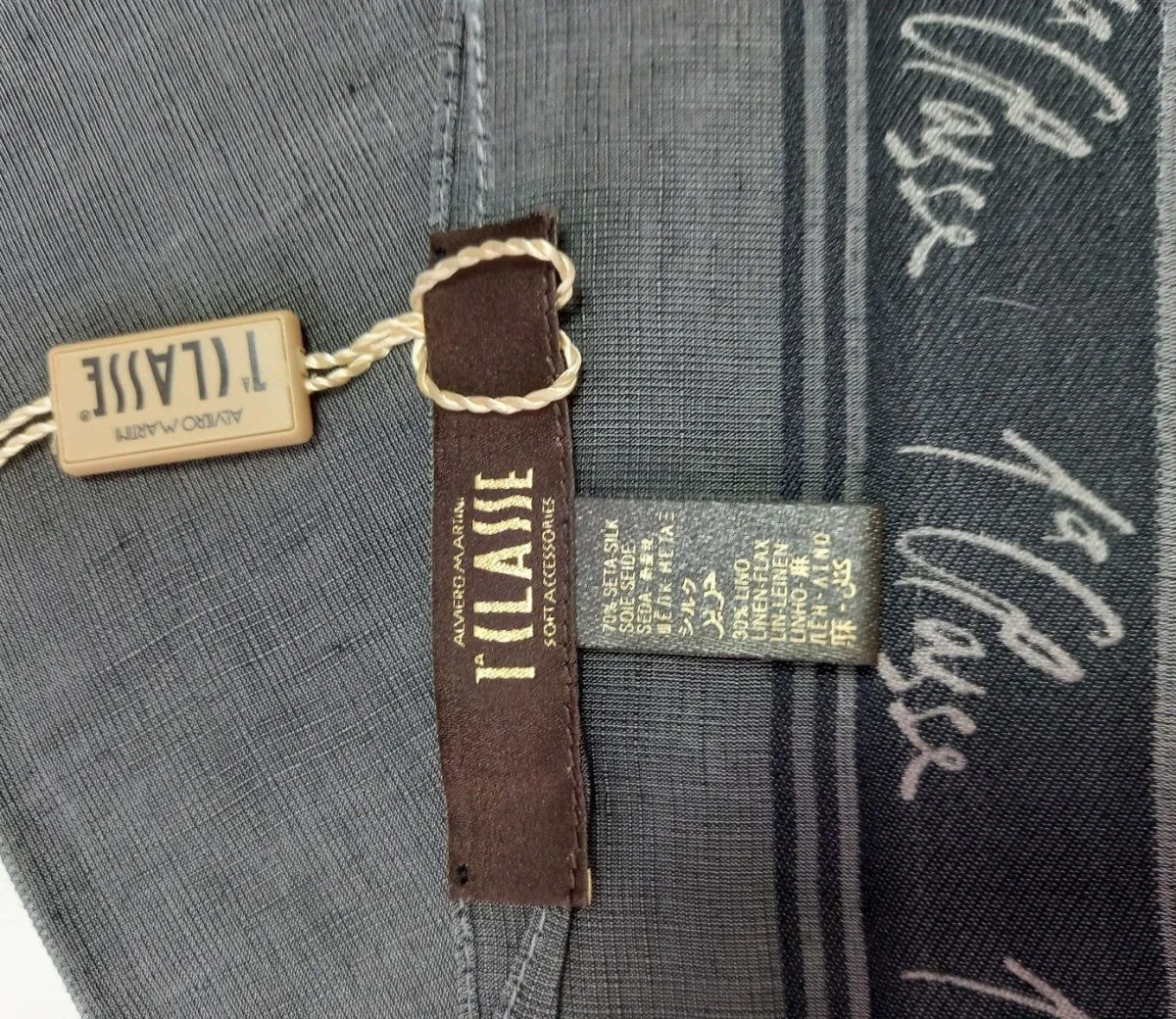 Scialle Grigio in 70% seta 30% lino Alviero Martini Prima Classe, grande Da indossare in vari modi, elegante DETTAGLI: Lunghezza 140 cm Altezza 70 cm Made in Italy