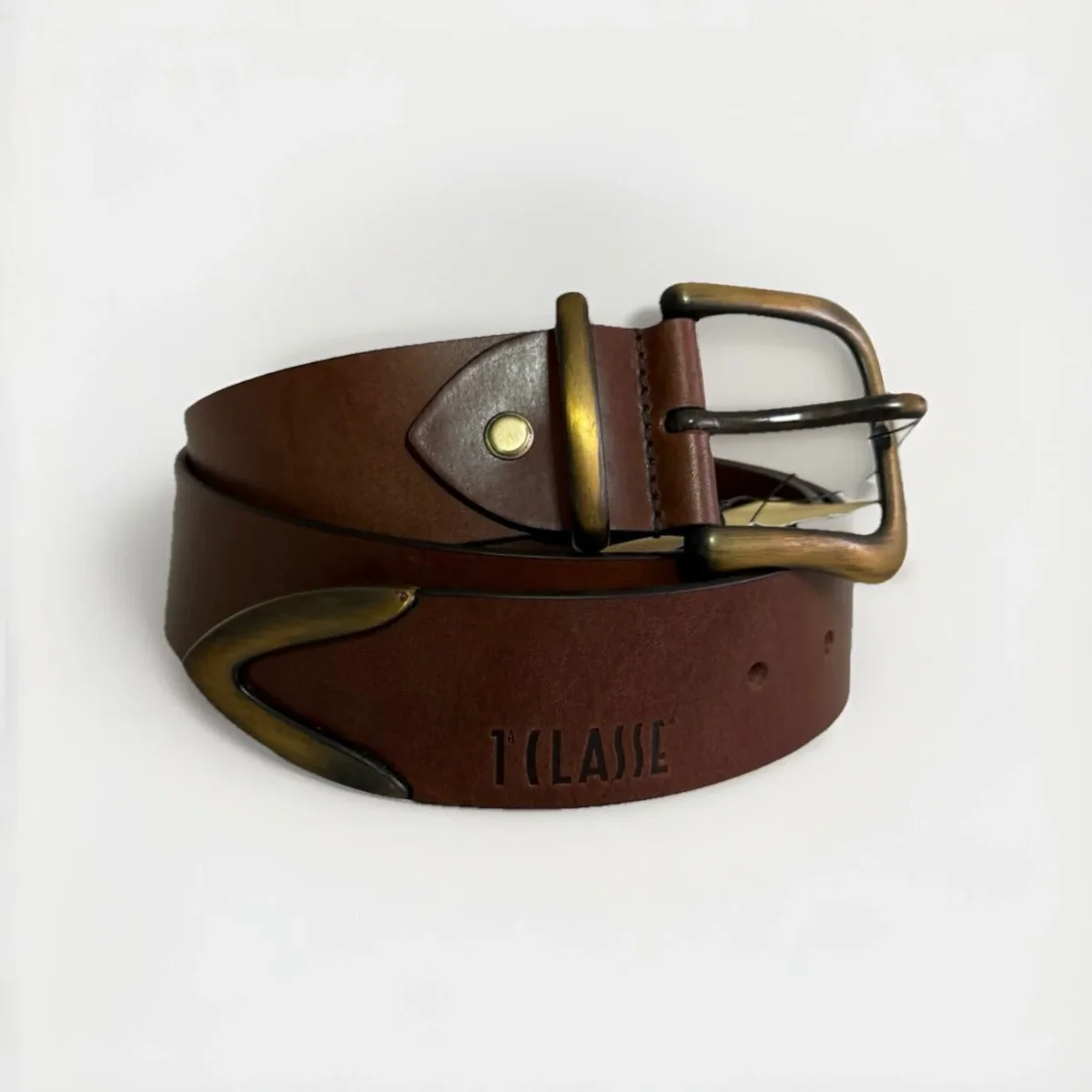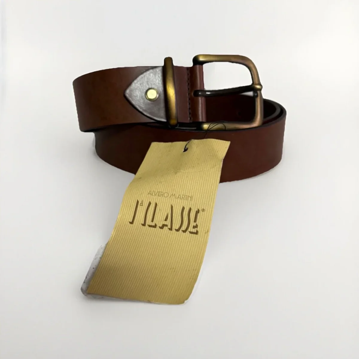 Cintura unisex in vera pelle color marrone con puntale Taglia 85 cm Lunghezza totale 102 cm Taglia 90 cm Lunghezza totale 107 Taglia 95 Lunghezza totale 112 cm Altezza 4 cm Cintura accorciabile Made in Italy
