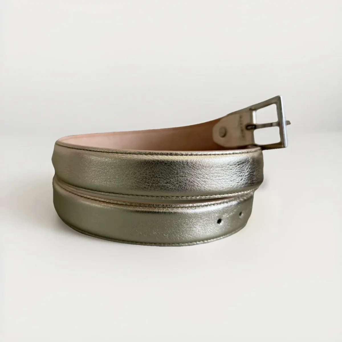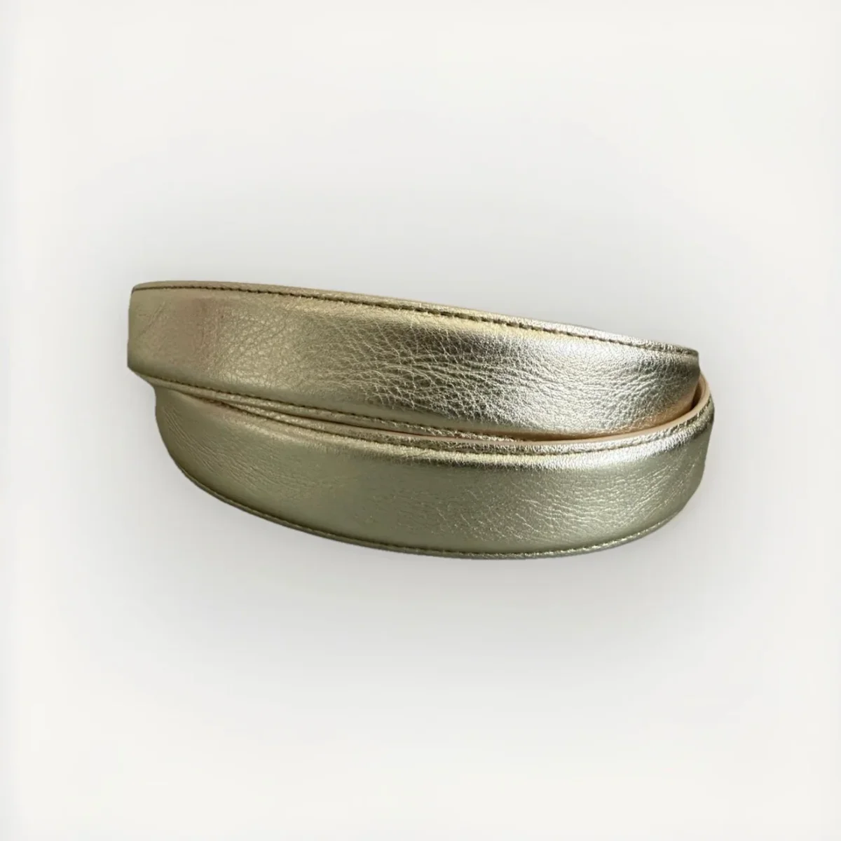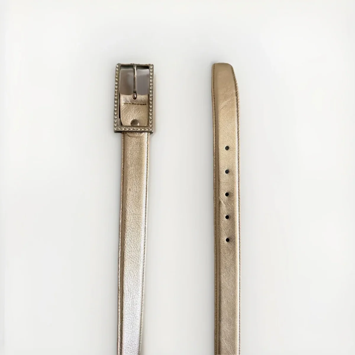 Cintura in vera pelle color oro e fibbia in metallo con strass