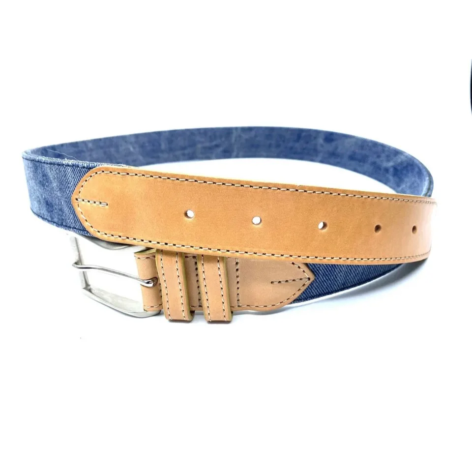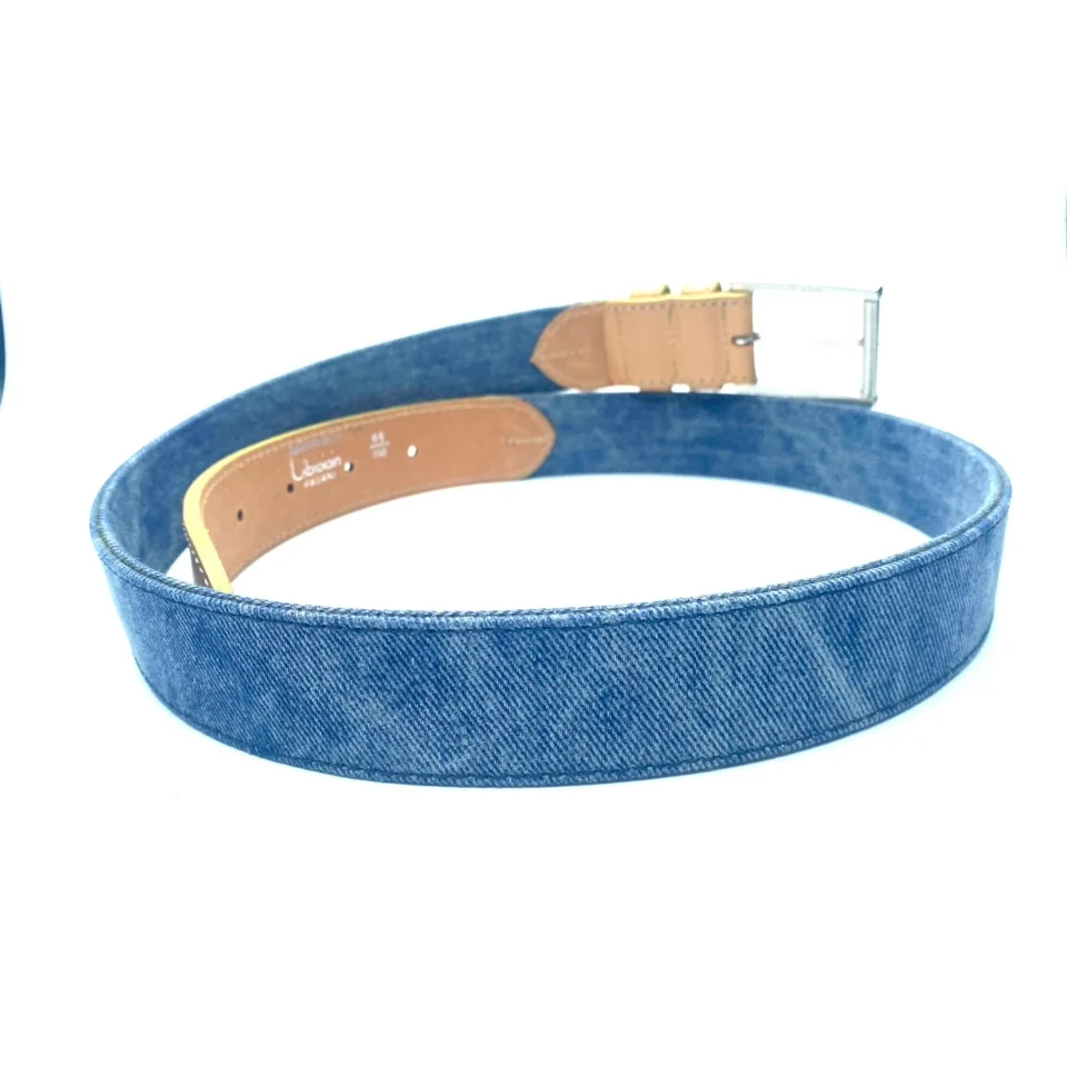 Cintura donna in cuoio e tessuto jeans e fibbia in metallo. Prodotto di alta qualità artigiana. Cintura accorciabile Altezza 3,5 cm Made in Italy