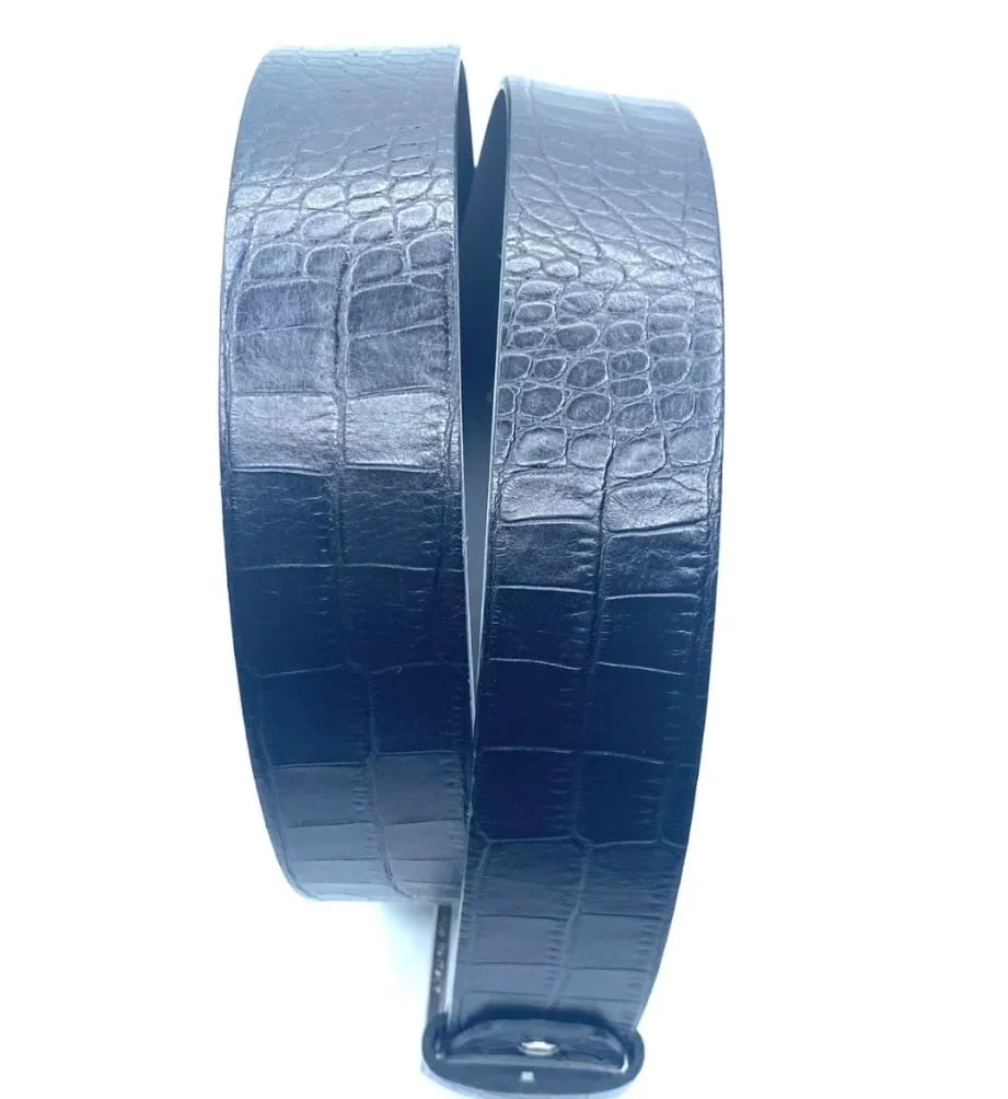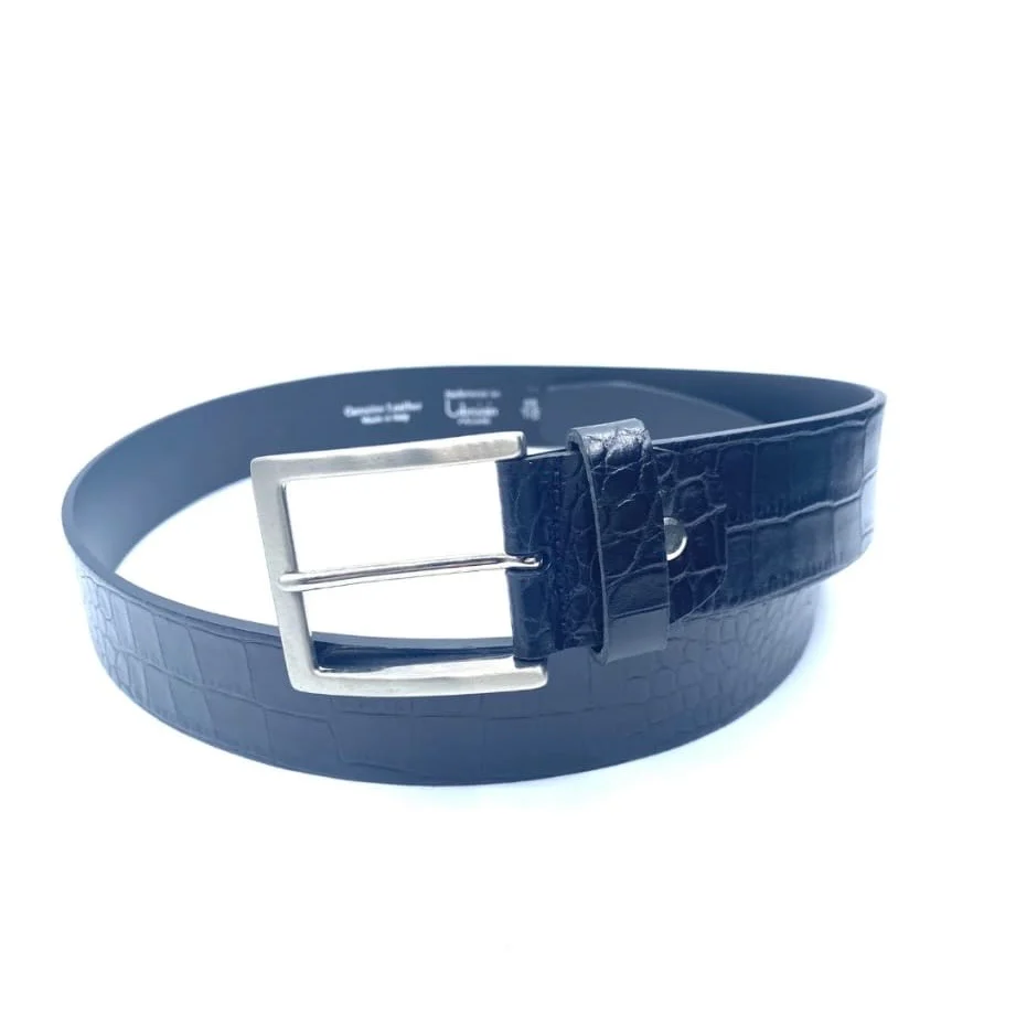 Bellissima cintura unisex in vera pelle stampa cocco nera. Dettagli in metallo