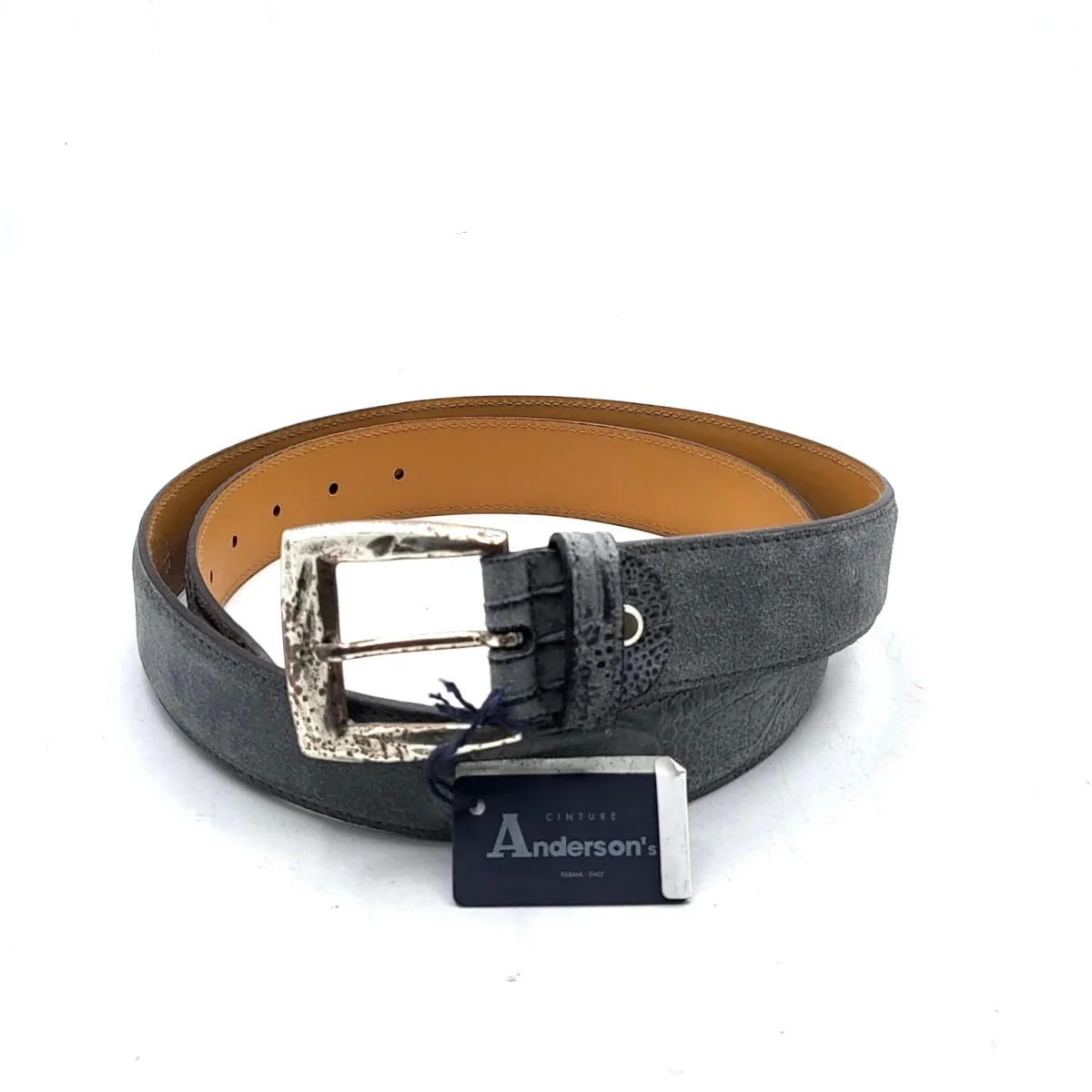 ANDERSON’S CINTURA IN PELLE SCAMOSCIATA STAMPA PITONE GRIGIA