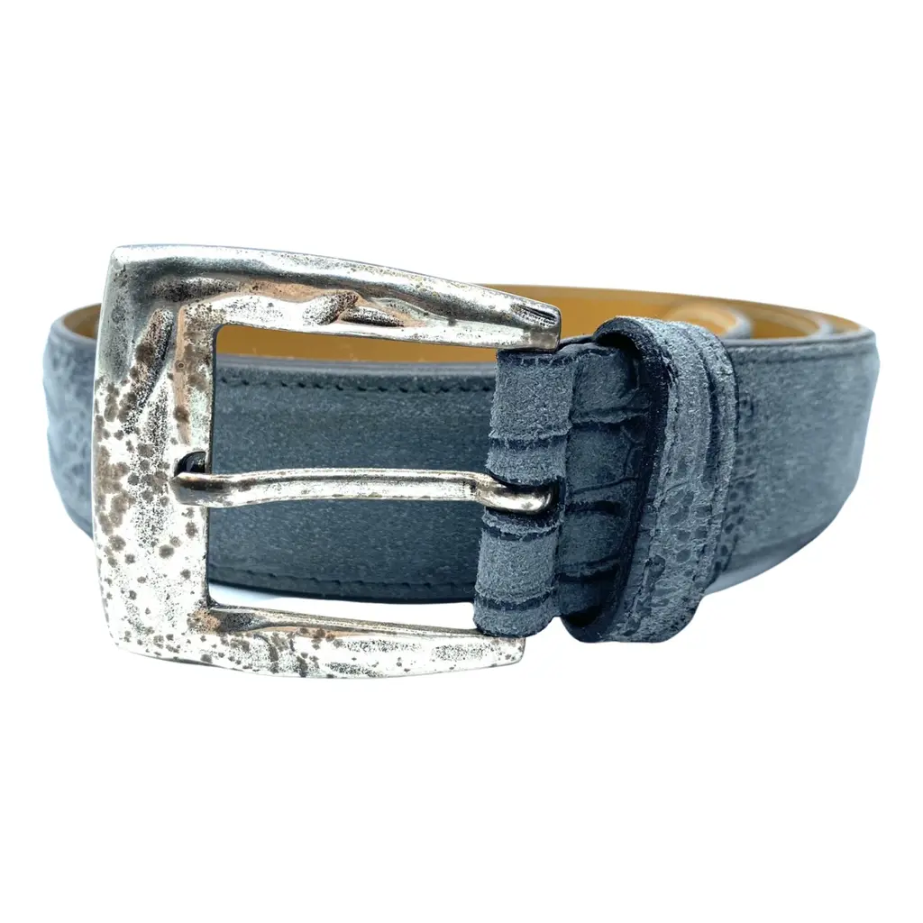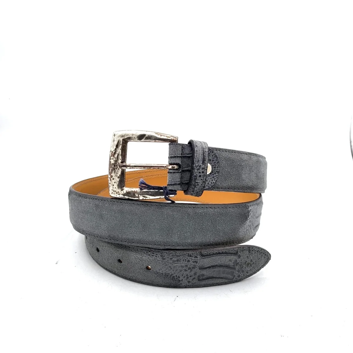 Bellissima cintura unisex in vera pelle grigia e fibbia in metallo invecchiato Prodotto artigianale di alta qualità. La cintura può essere accorciata Dimensioni Altezza 3,5 cm Fatto in Italia