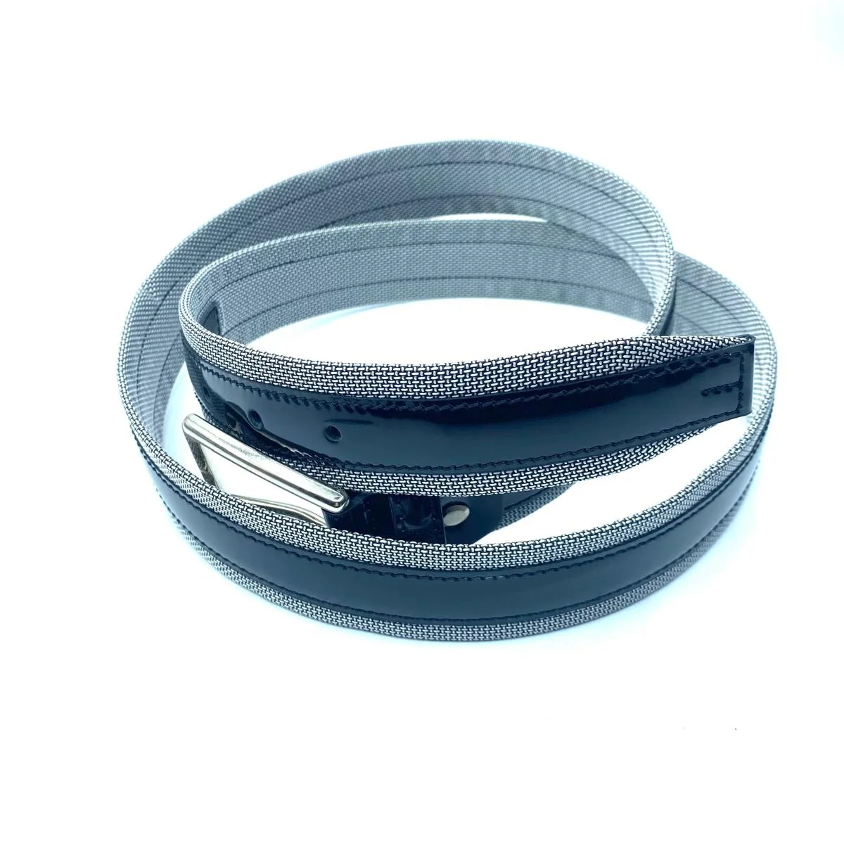 Bellissima cintura donna in vera pelle vernice e tessuto colore grigio/nero.