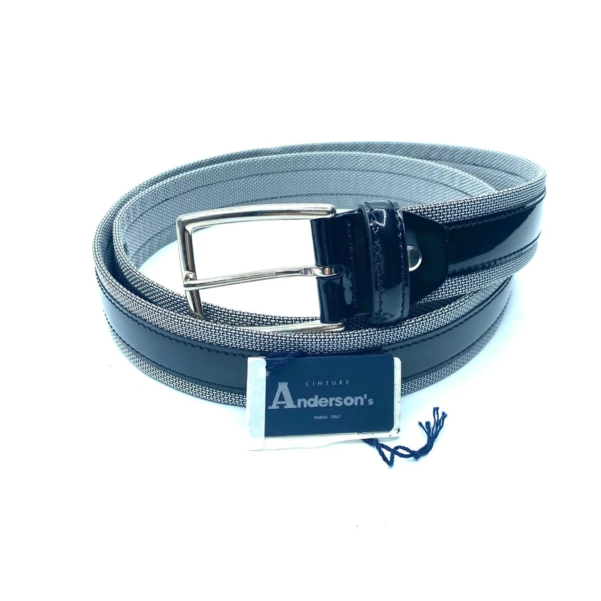 ANDERSON’S CINTURA IN TESSUTO E PELLE GRIGIO NERA