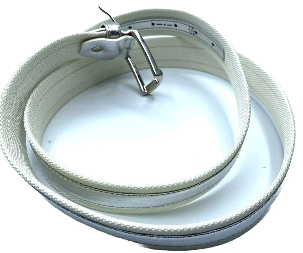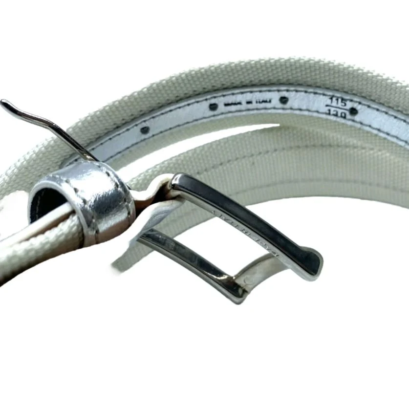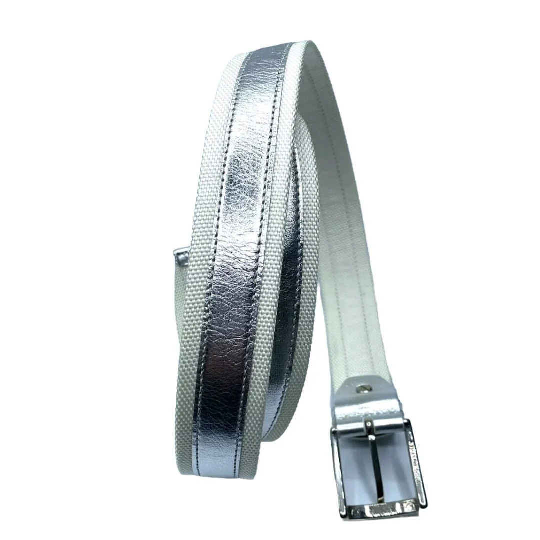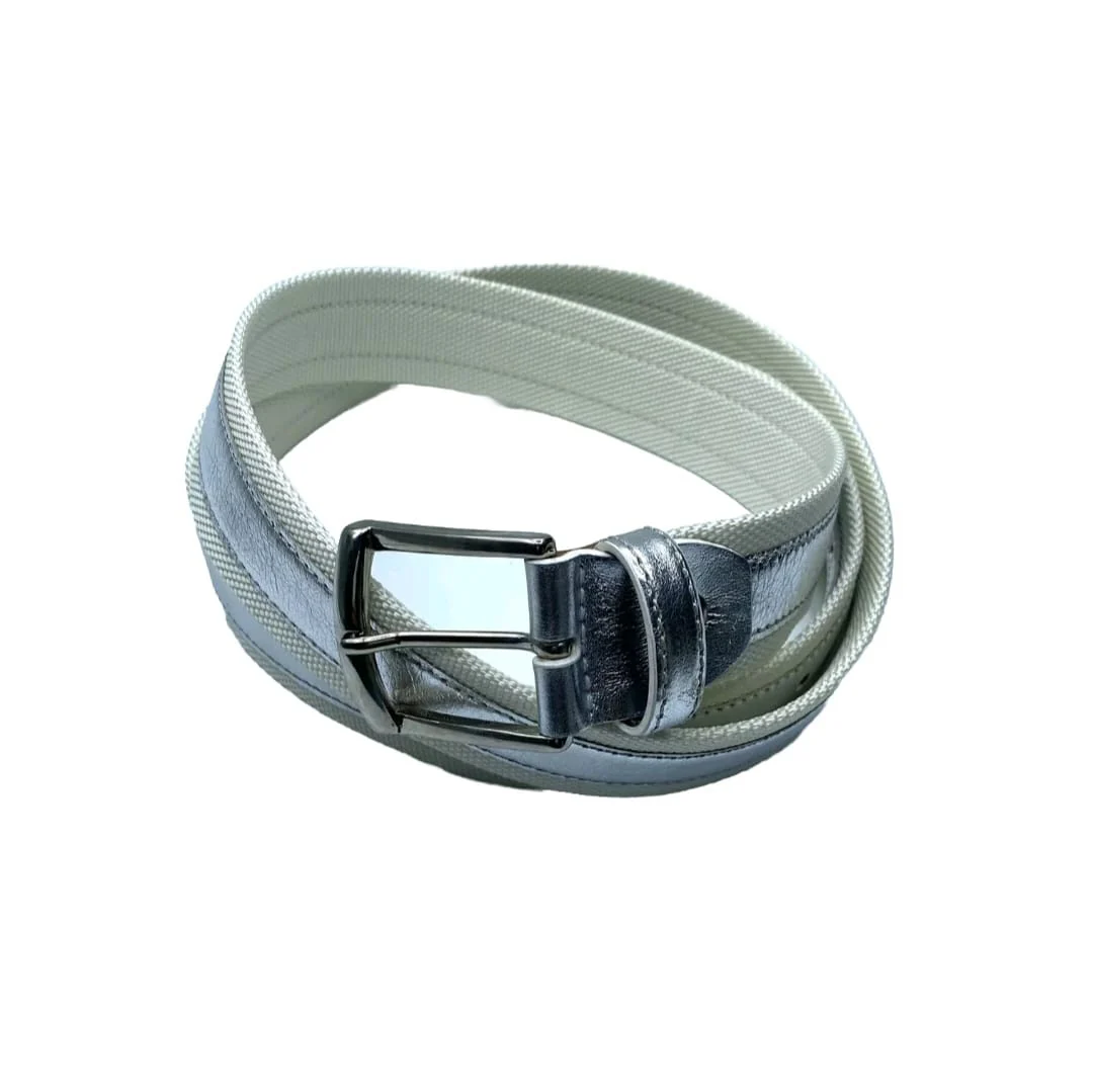 Cintura in tessuto e vera pelle color bianco/argento e fibbia in metallo