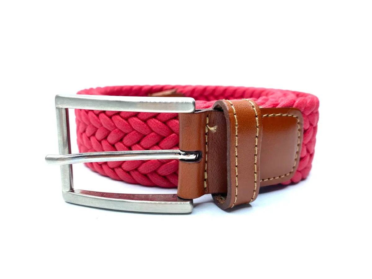 Bellissima cintura donna intrecciata di colore rosso con inserì in vera pelle