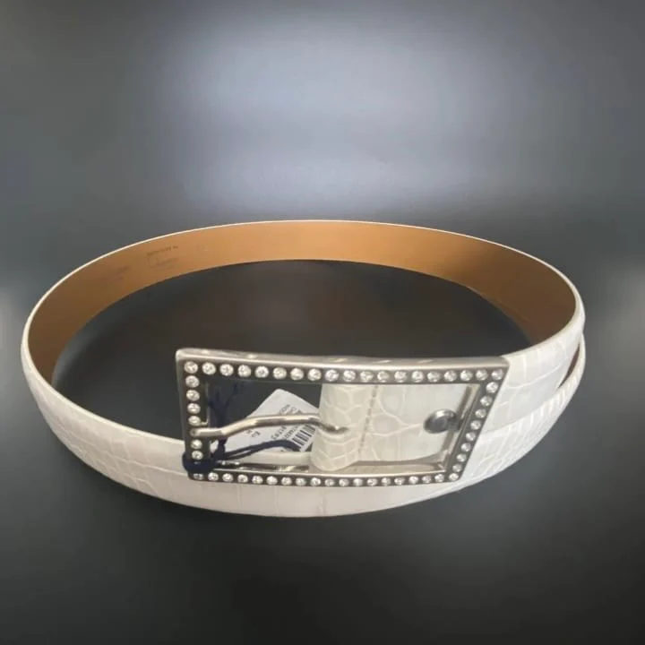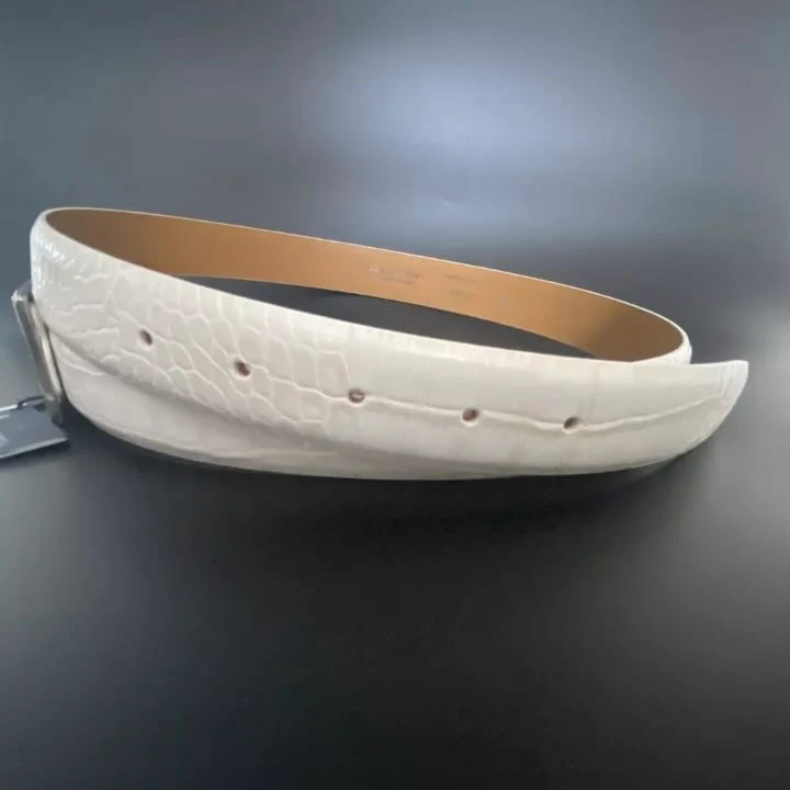 Bellissima cintura donna in vera pelle bianca sfumata stampa cocco. Dettagli in metallo