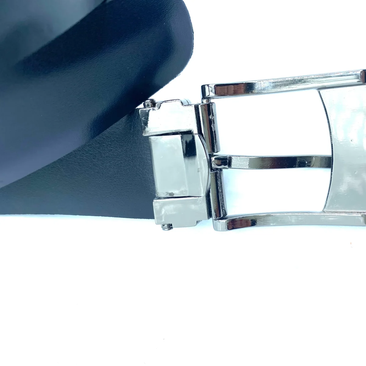 Cintura elegante nera pelle liscia senza cucitura con fibbia in metallo. Cintura accorciabile.