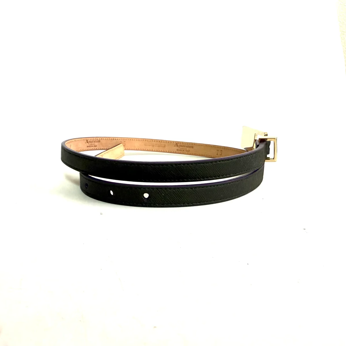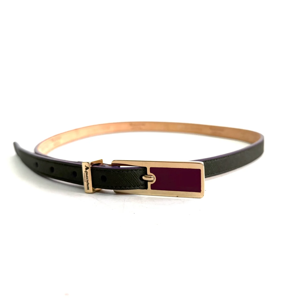 Cintura donna Aquascutum of London da Donna, chiusura con fibbia dorata. NUOVA SENZA CARTELLINO Vera pelle verde con bordo e fibbia viola, articolo del britisch Style made in Italia. Prodotto di alta qualità artigiana. Taglia 75/90 Altezza 1,5 cm Made in Italy.