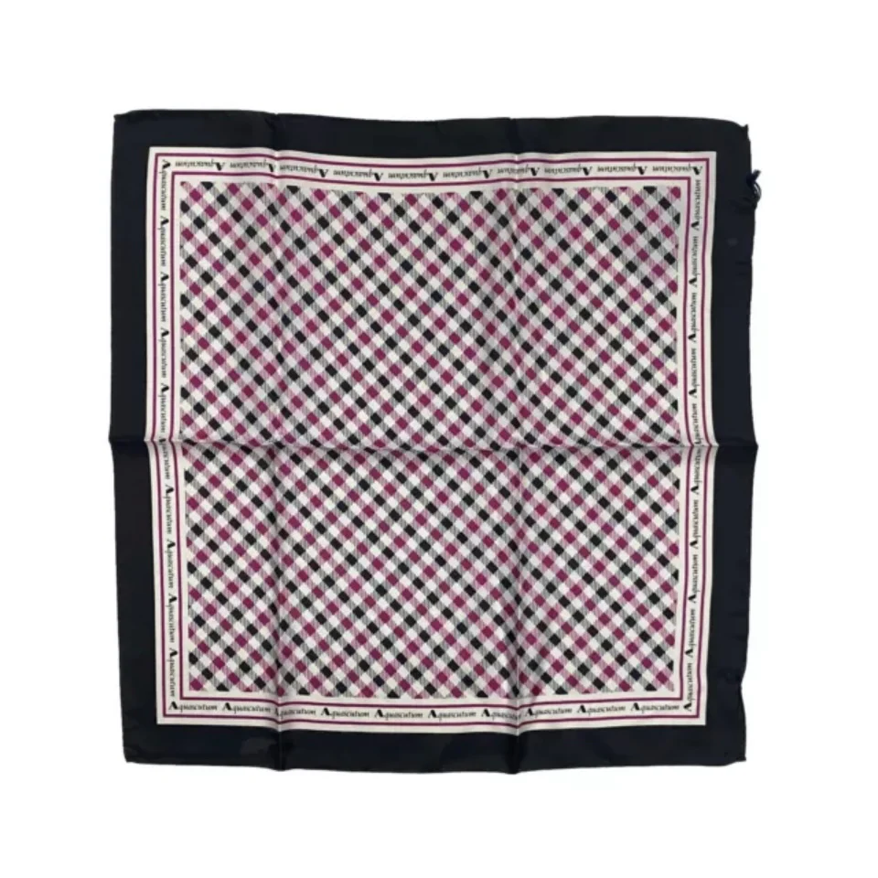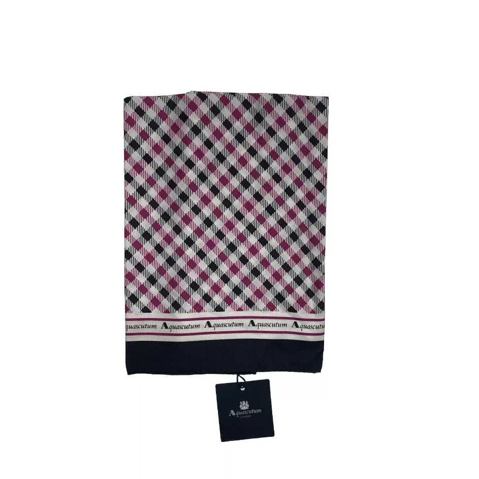 Foulard Aquascutum in seta Orlo cucito a mano Fantasia quadretti fucsia/nero/bianco Bordo nero Idea regalo Dimensioni 48 x 48 cm Made in italy