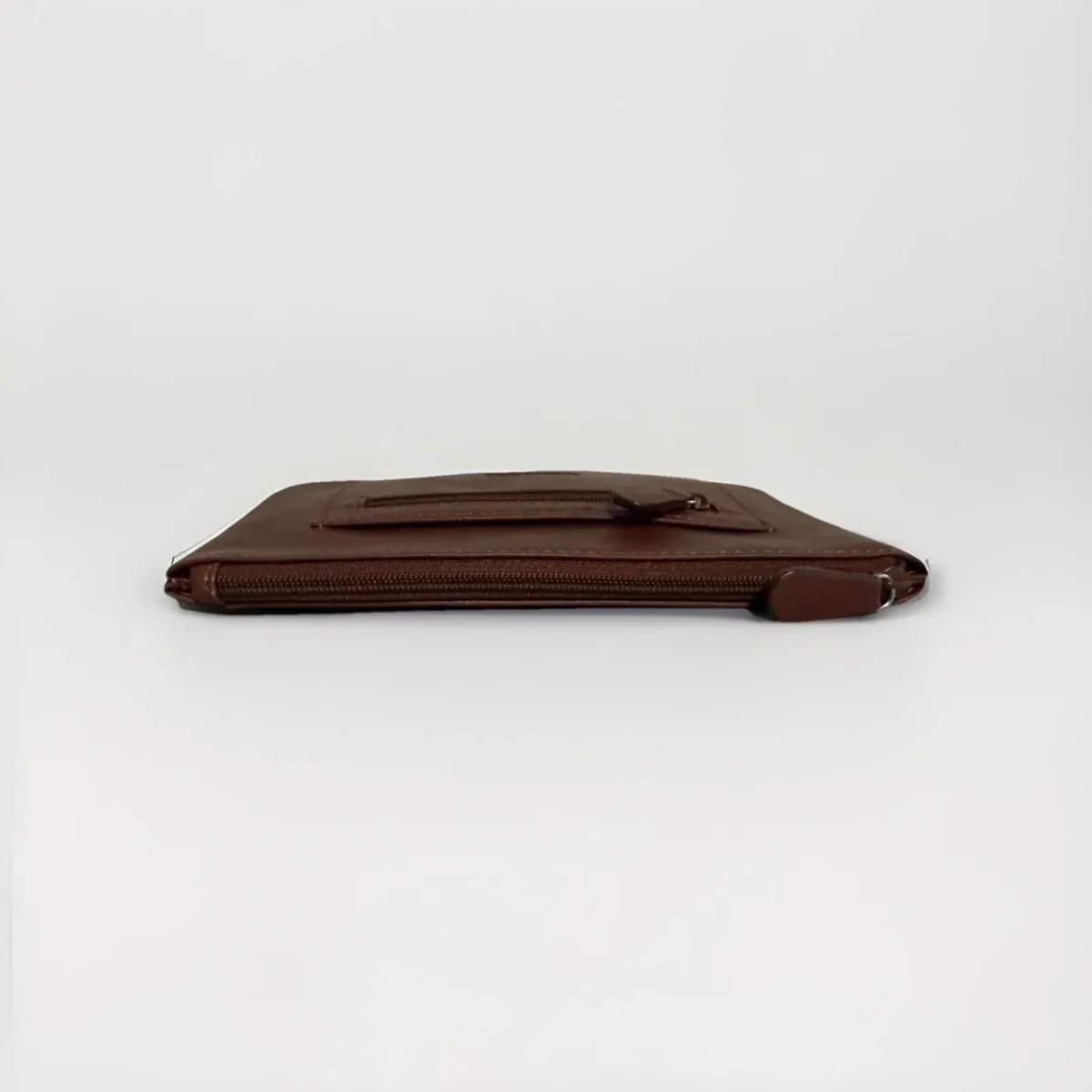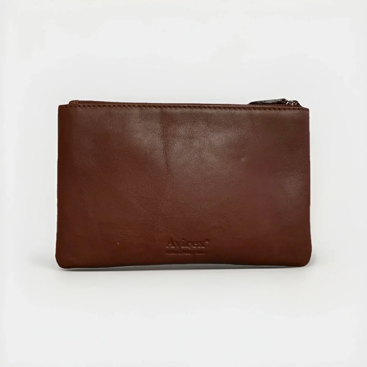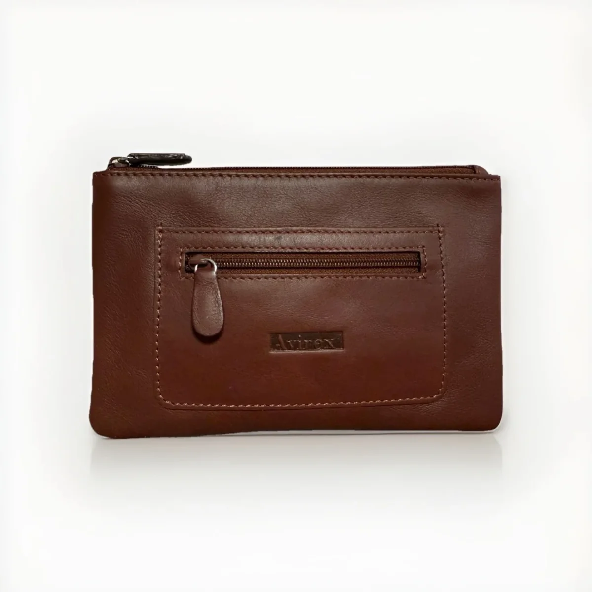 Bustina portatutto AVIREX E’ pratica piatta e rettangolare. Realizzata in similpelle marrone Perfetta da tenere in borsa e da portare sempre con sé Chiusa con cerniera Tasca anteriore chiusa con cerniera Dimensioni H 11 cm L 17 cm P 1 cm Made in Italy