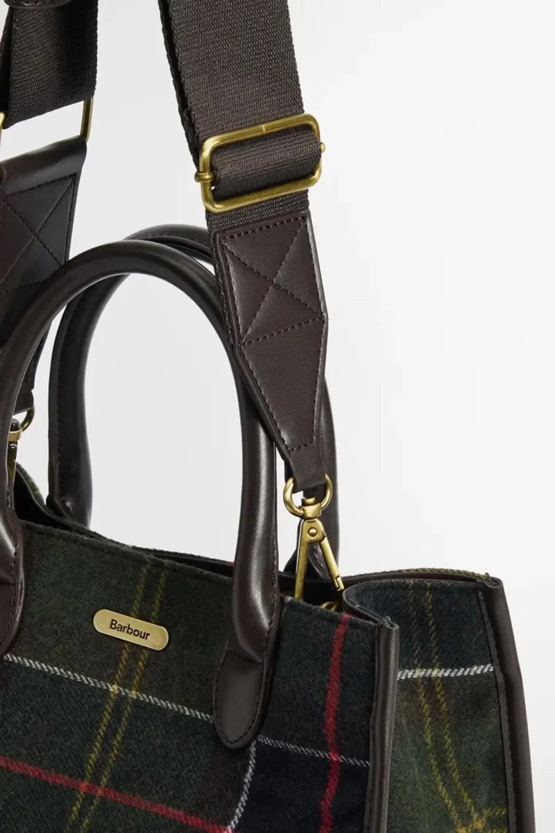 L’heritage di Barbour affonda le sue radici nella città di Dumfries, situata lungo i confini della Scozia. Avrai sicuramente fatto caso all’utilizzo del tartan sulle finiture e sulla fodera di alcuni dei nostri capi più popolari: da oggi, sarà presente anche sui nostri accessori. La borsa tote Barrhill in tartan di Barbour rende omaggio alle nostre origini scozzesi grazie al suo motivo tartan in misto lana e alle finiture in ecopelle. Dotata di due manici sulla parte superiore e una tracolla staccabile, questa borsa tote ti permette di avere sempre con te gli oggetti essenziali che utilizzi ogni giorno.Materiale principale: 65% poliestere, 20% lana, 10% acrilico, 5% poliammide Fodera: 100% cotone Finitura: 100% poliuretano Badge con logo in rilievo sulla parte anteriore esterna. Altezza: 27,5 cm. Larghezza: 31,5 cm. Profondità: 7,5 cm. Manico: 11 cm. Lunghezza totale della tracolla: 130 cm. Pulire solo con una spugna.
