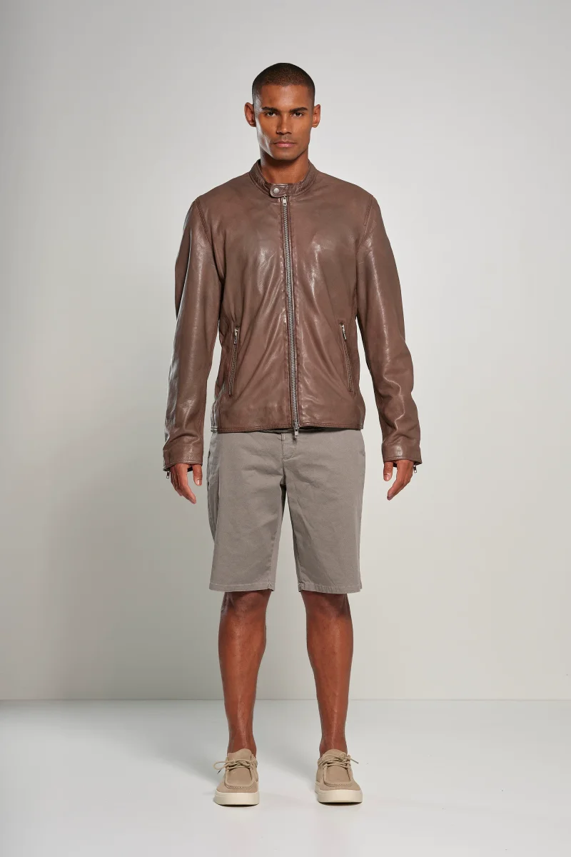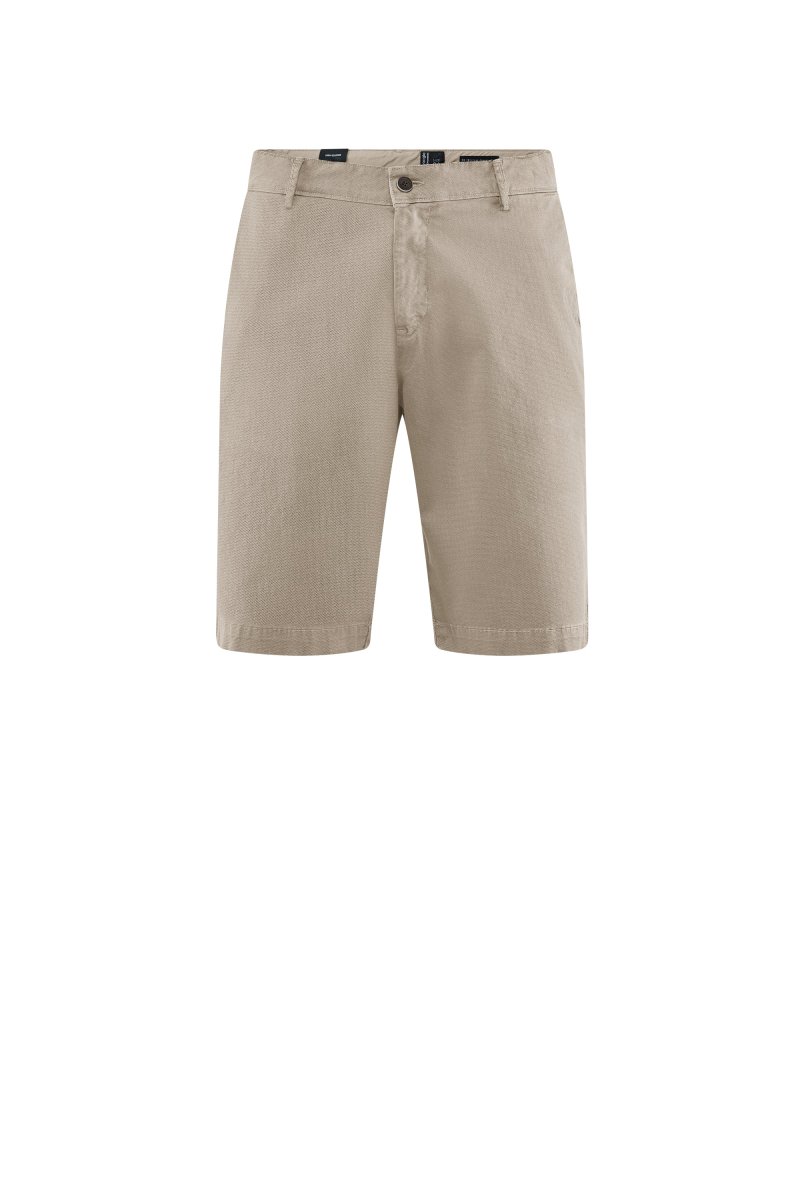 Bermuda chino da uomo, slim fit, ideale per chi cerca uno stile curato e fresco. Realizzati in: Gabardina di cotone stretch con micro-stampa, che assicura morbidezza, elasticità e un design distintivo.