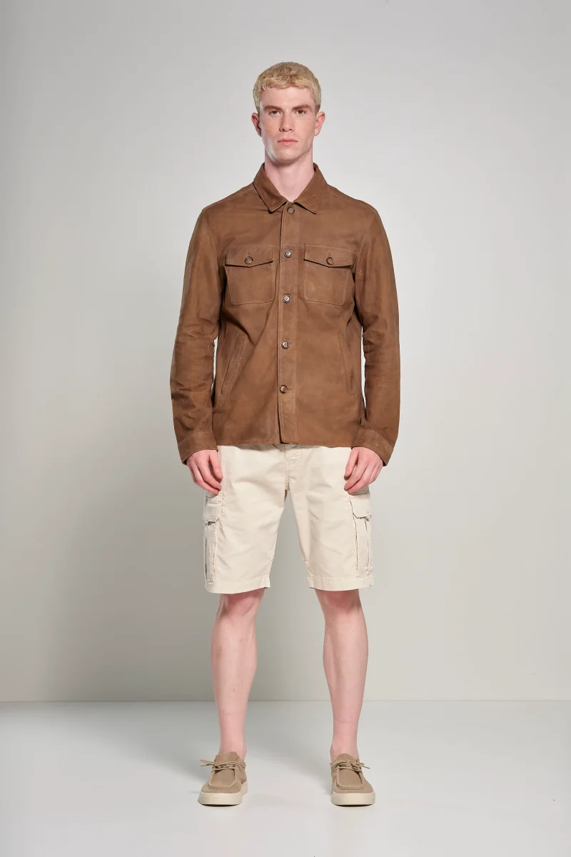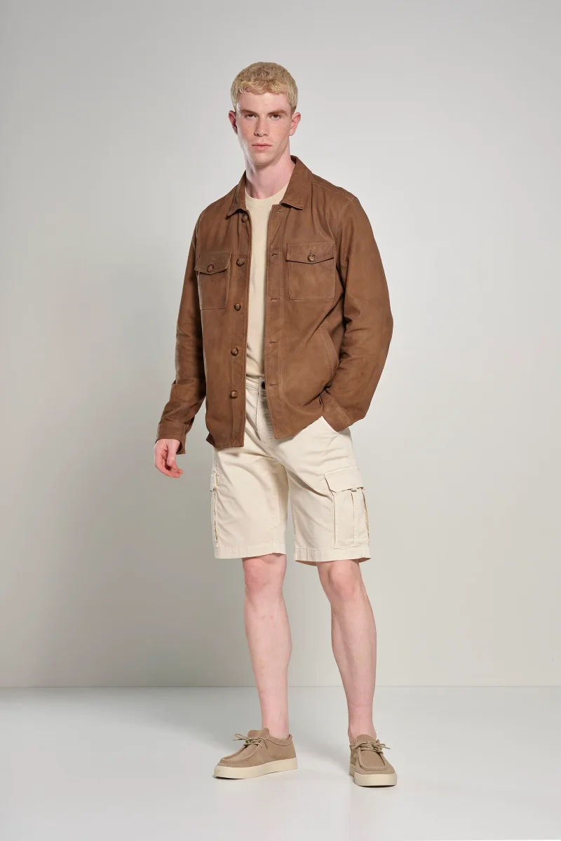 Bermuda da uomo con tasche cargo, comfy fit. Un capo pratico e funzionale, perfetto per chi cerca comfort e uno stile casual. Realizzati in: Gabardina di cotone stretch, tinto e lavato in capo, che offre elasticità e resistenza.