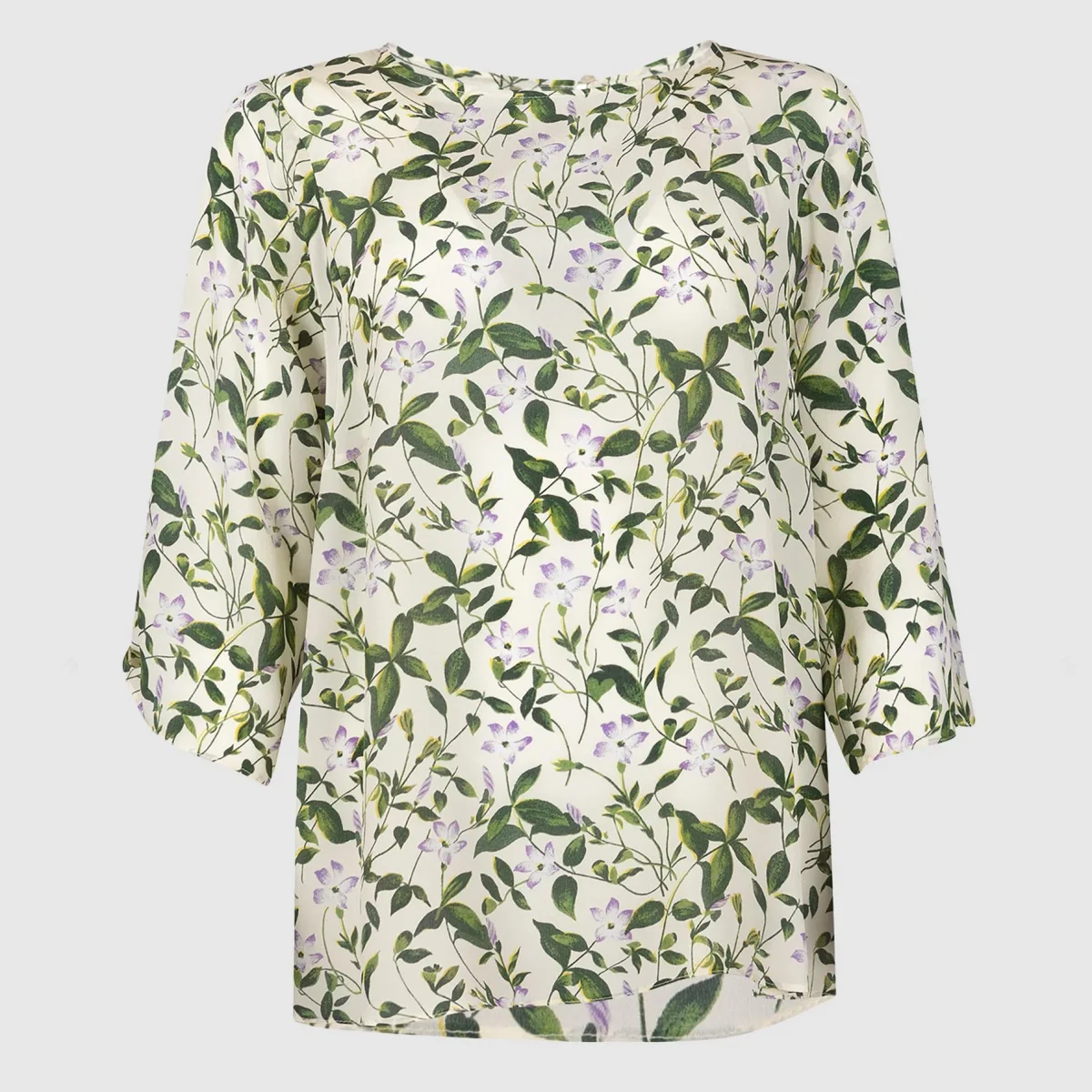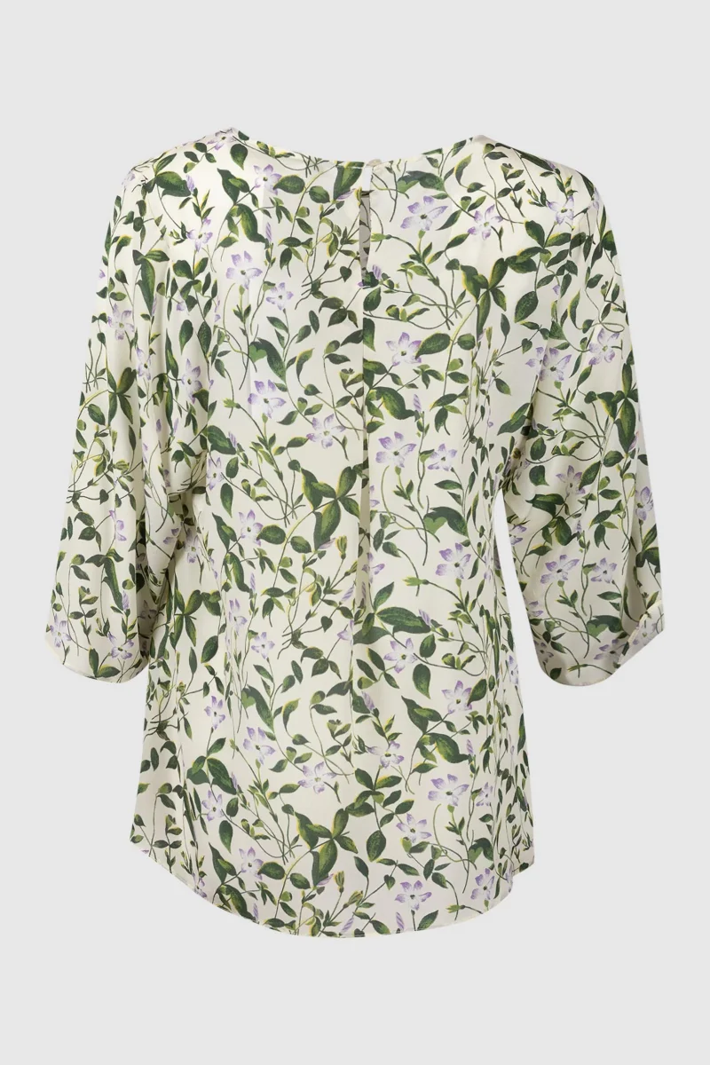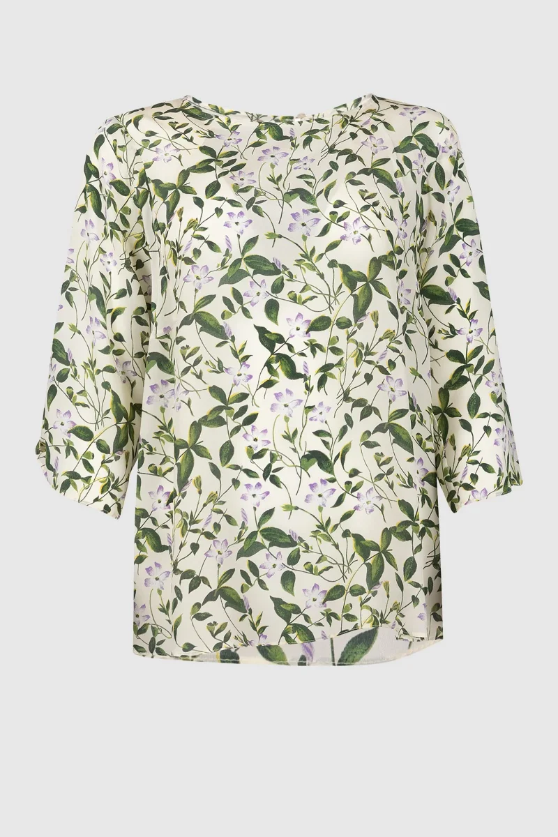 Blusa con fantasia a fiori sulle tonolità del verde.