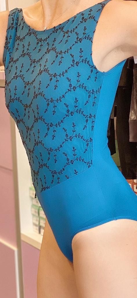 Body Ballet Rosa modello Lorelle , davanti ha lo scollo a barca e ha ha splendidi ricami floreali di colore nero . Sul dietro ha un profondo scollo a V con arricciatura finale .