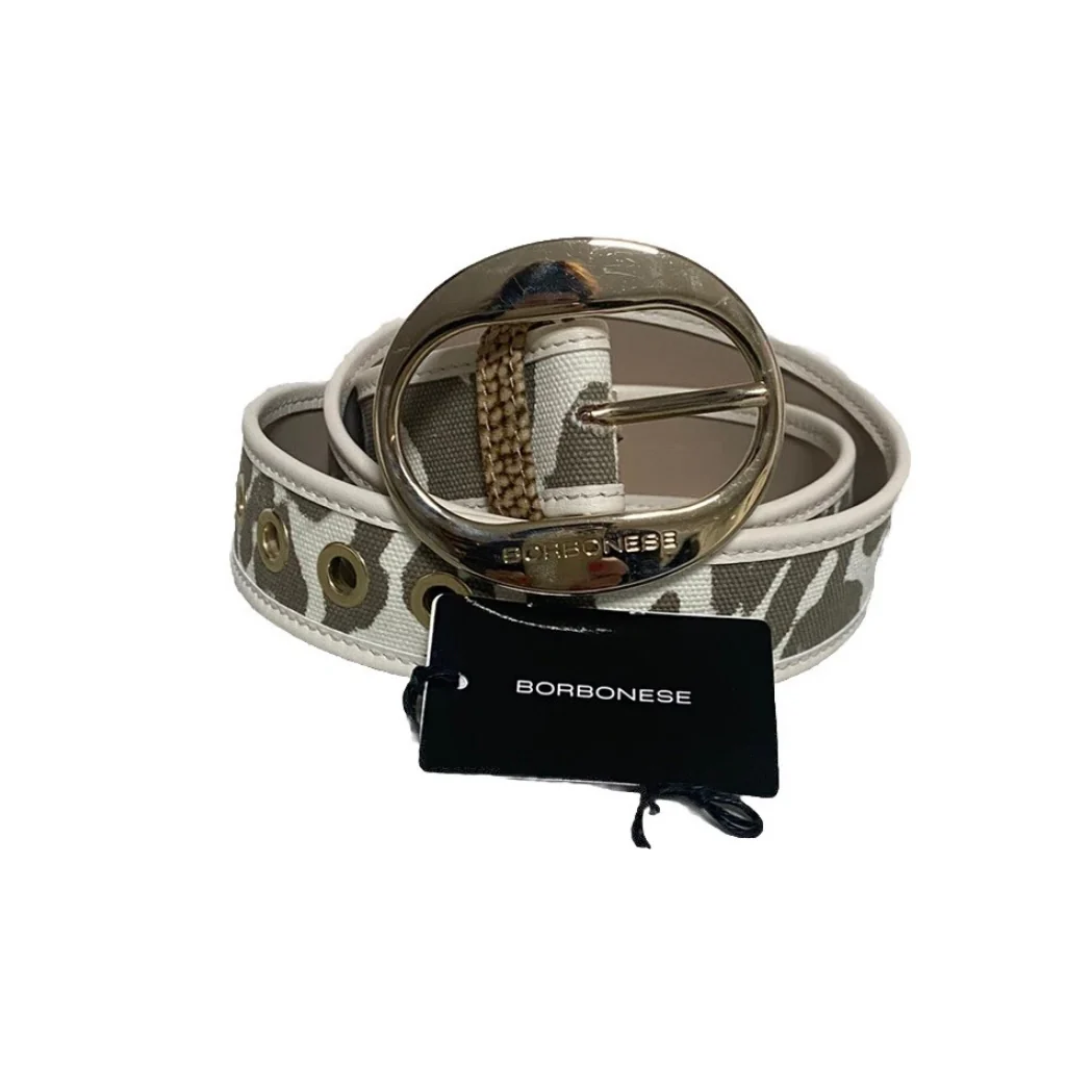 Borbonese cintura da donna in vera pelle e tessuto stampa Animalier militare.fibbia con impresso il logo borbonese, metalleria color oro. Altezza 4 cm Listino € 195,00 Made in Italy sinonimo di qualità e creatività