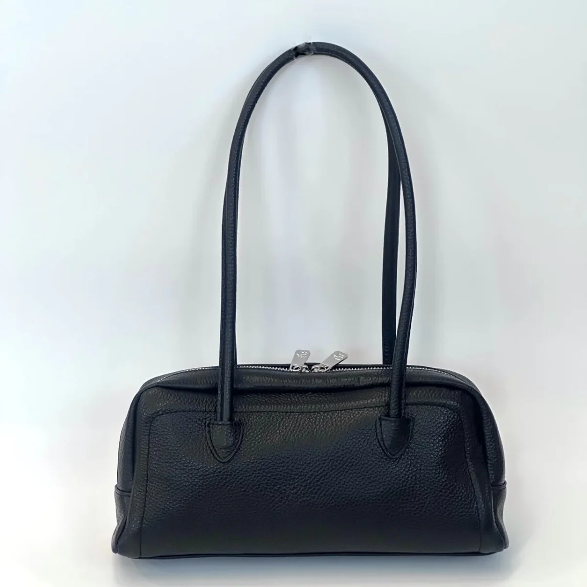 Borsa in pelle a due manici con chiusura a cerniera. Interno foderato con taschine porta oggetti. Portabilità a spalla. Misure cm 30 x 13 x 9 Vera pelle made in Italy