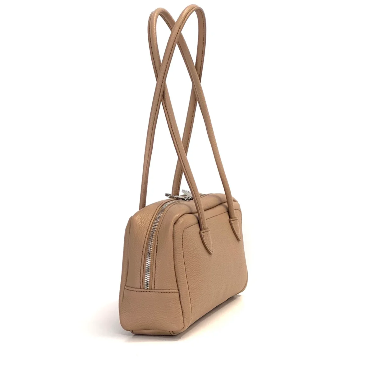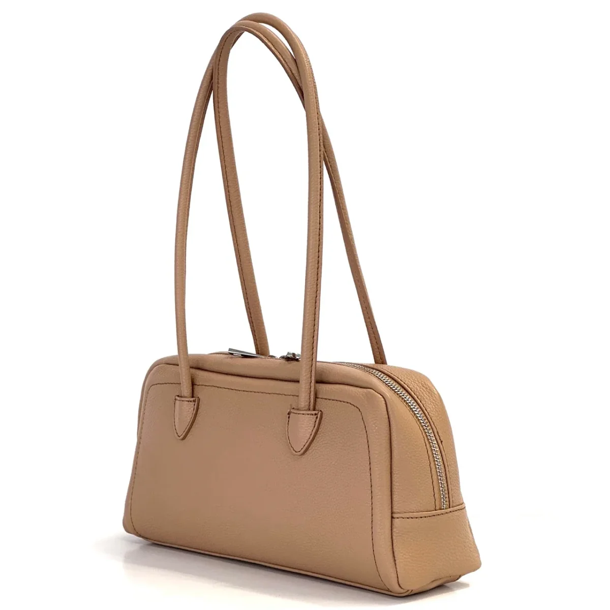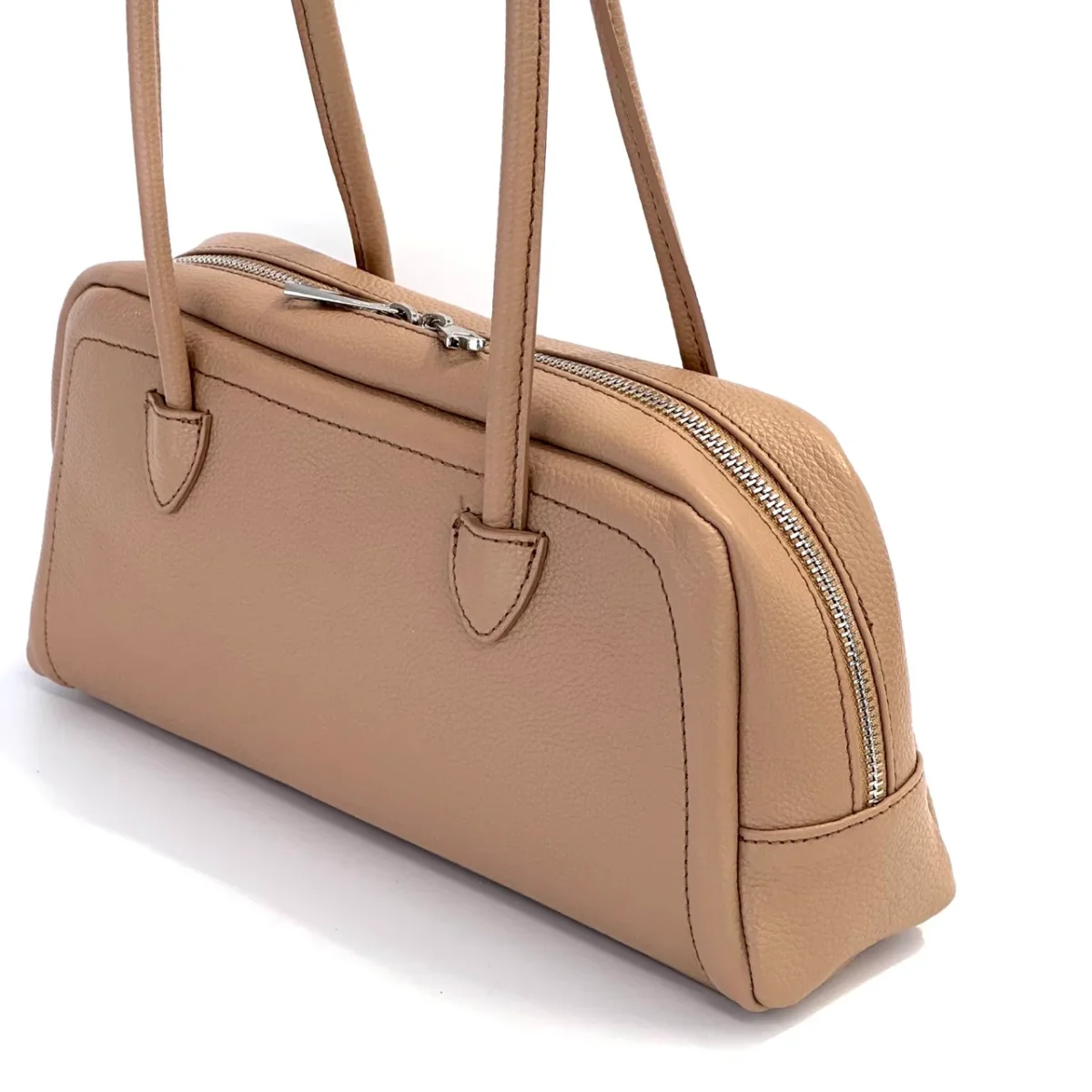 Borsa in pelle a due manici con chiusura a cerniera. Interno foderato con taschine porta oggetti. Portabilità a spalla. Misure cm 30 x 13 x 9 Vera pelle made in Italy