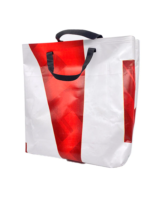 Shopper – Beach bag collezione Honda ’22 – Realizzata in PVC rosso con scarti di striscioni pubblicitari; interno nero.