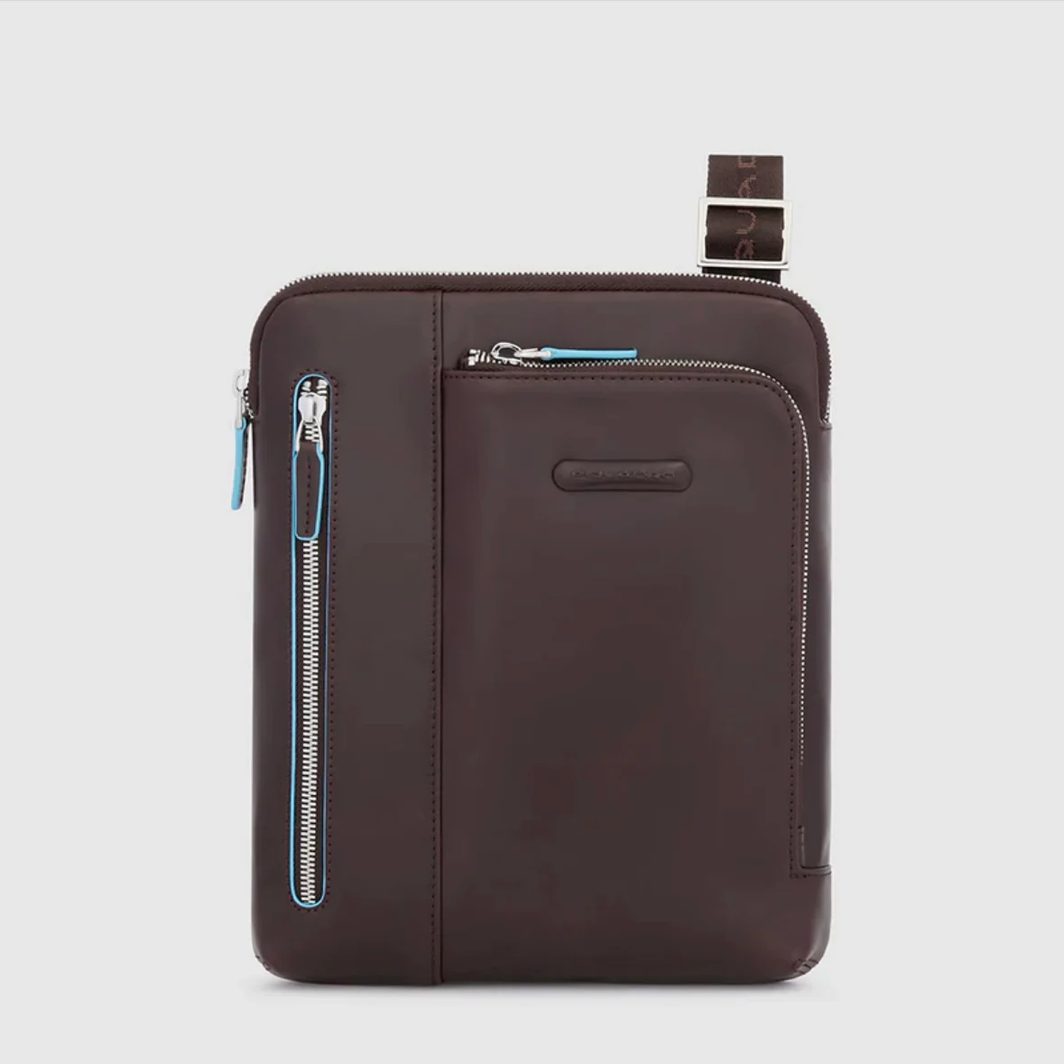 Borsello in pelle con tasca interna porta iPad e con doppia tasca frontale con chiusura a cerniera. Tasca posteriore chiusa con cerniera. Tasche interne aperte porta cellulare e porta oggetti. Fodera interna in poliestere. Dimensioni cm 23 (larghezza) x 28,5 (altezza) x 5 (profondità).La linea Blue Square di Piquadro è realizzata in pelle di vitello, […]