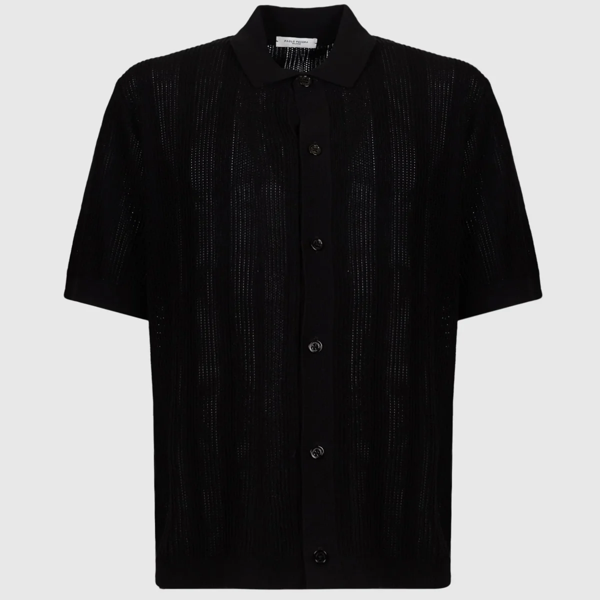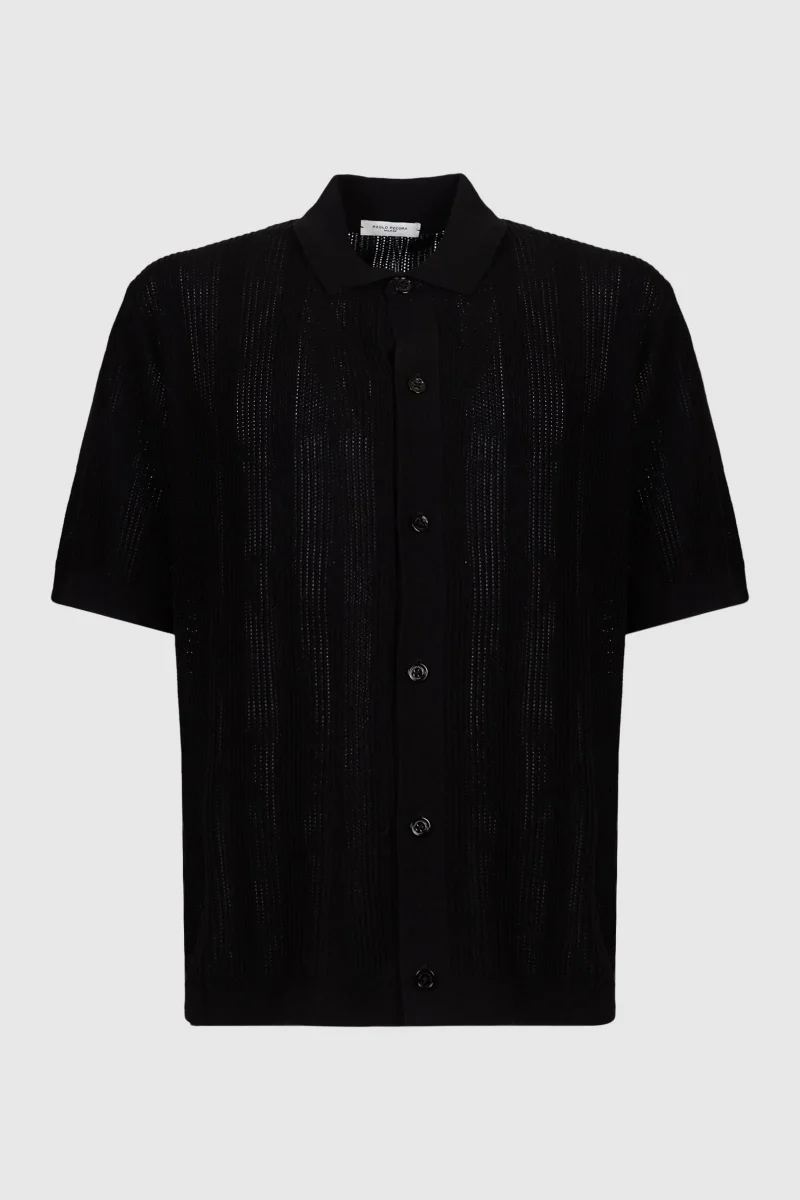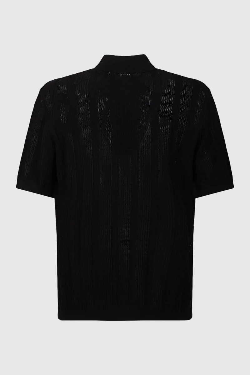 Camicia in Maglia a Maniche Corte in Cotone Crepe Extrafine Nero
