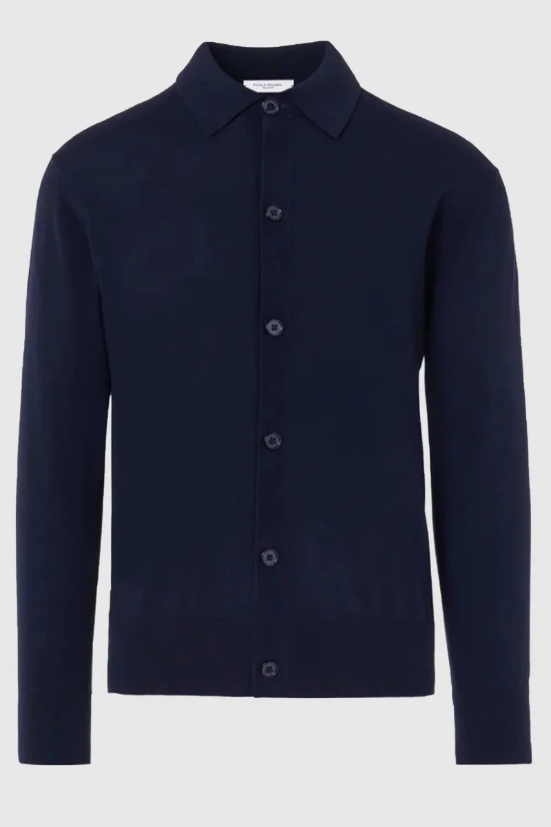 Un equilibrio perfetto tra stile casual e formale. La camicia in maglia a maniche lunghe, realizzata in puro cotone extrafine, incarna l’essenza di Paolo Pecora Milano. La texture morbida e compatta esalta il comfort, mentre il design essenziale e i bottoni frontali aggiungono un tocco di sofisticata semplicità. Ideale per chi cerca un capo versatile da indossare in contesti urbani o formali, mantenendo sempre uno stile impeccabile. La tonalità blu navy, intramontabile e raffinata, completa il look con un’eleganza contemporanea.