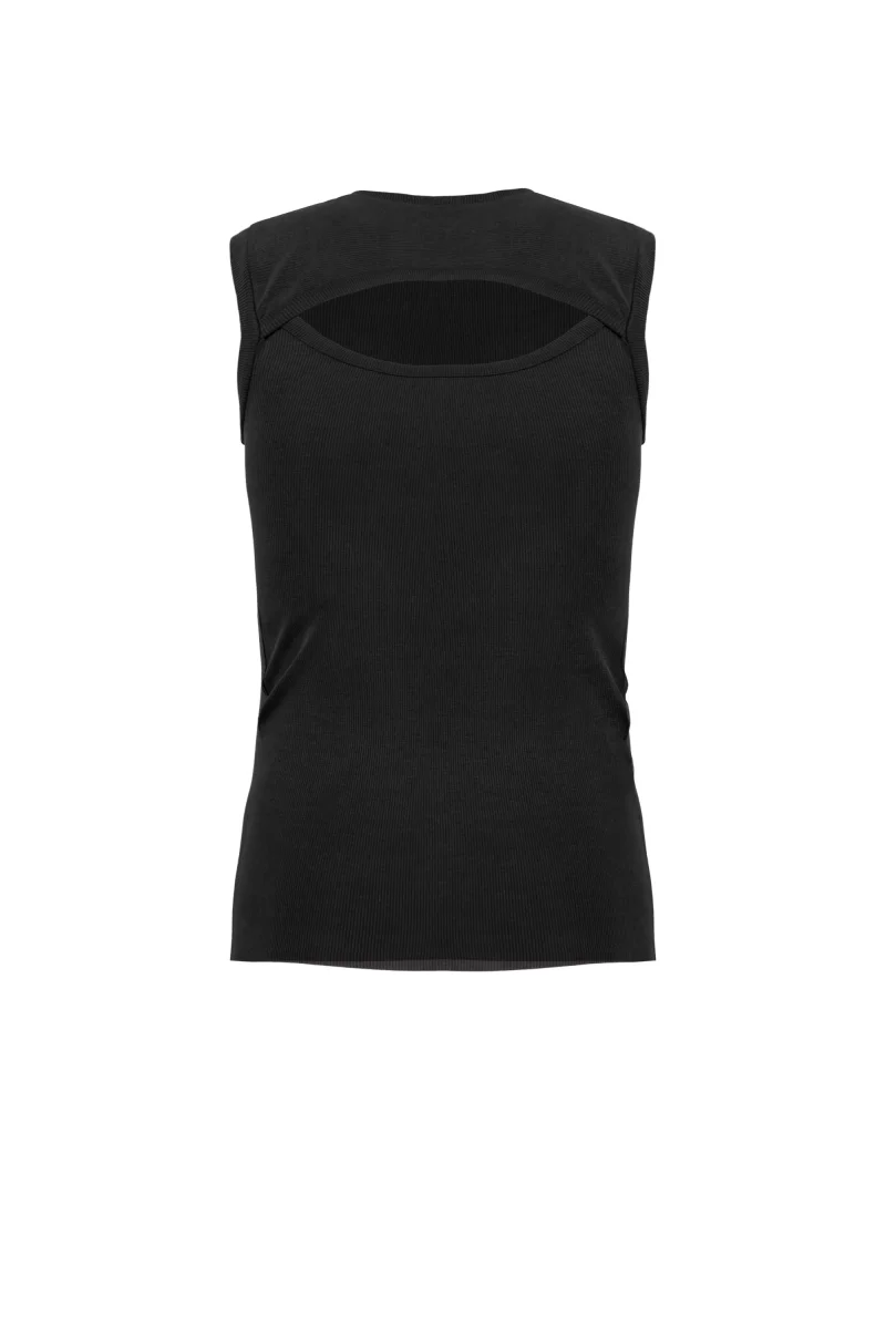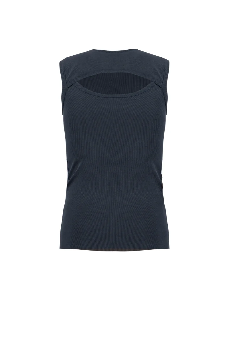 Canottiera da donna con apertura sul retro. Un capo leggero e moderno, perfetto per chi cerca uno stile fresco e confortevole.