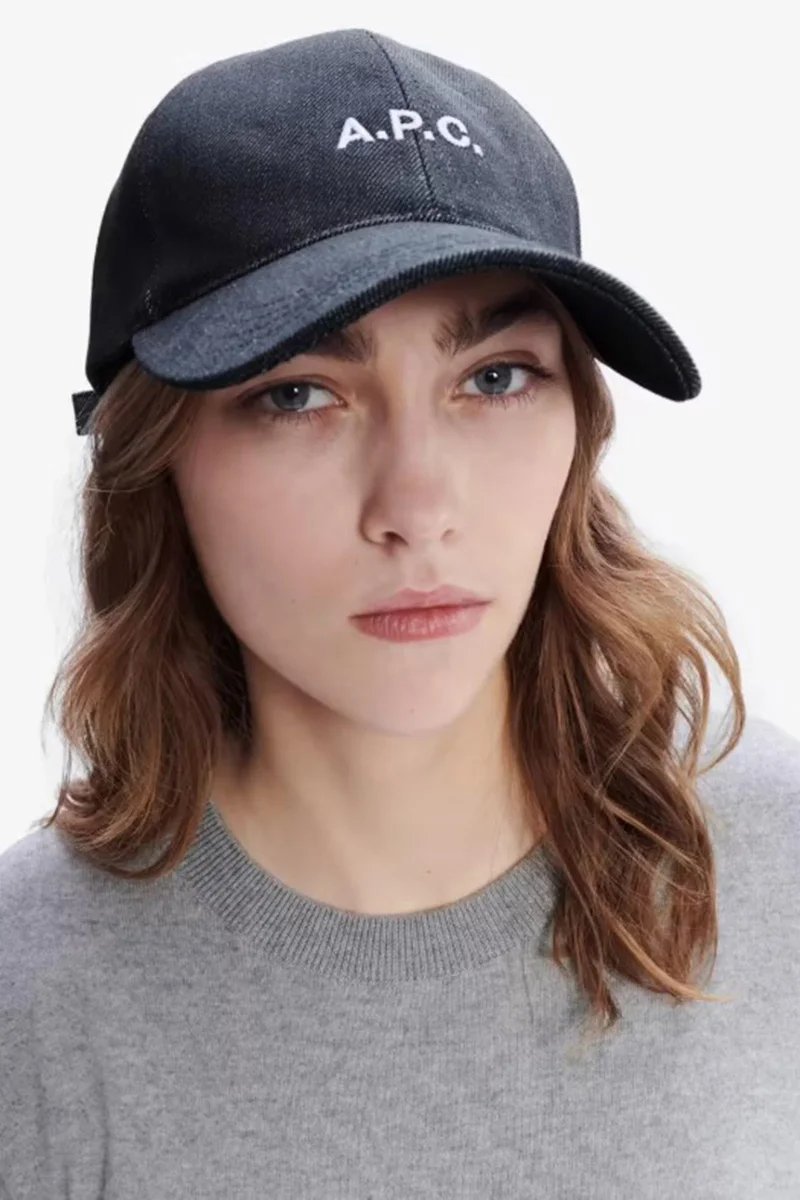 tela denim giapponese.Sei pannelli.Visiera con impunture.Due occhielli per la traspirazione.Fascia rinforzata.Logo A.P.C. bianco ricamato sul davanti. Composizione:98% cotton. 2% polyurethane.