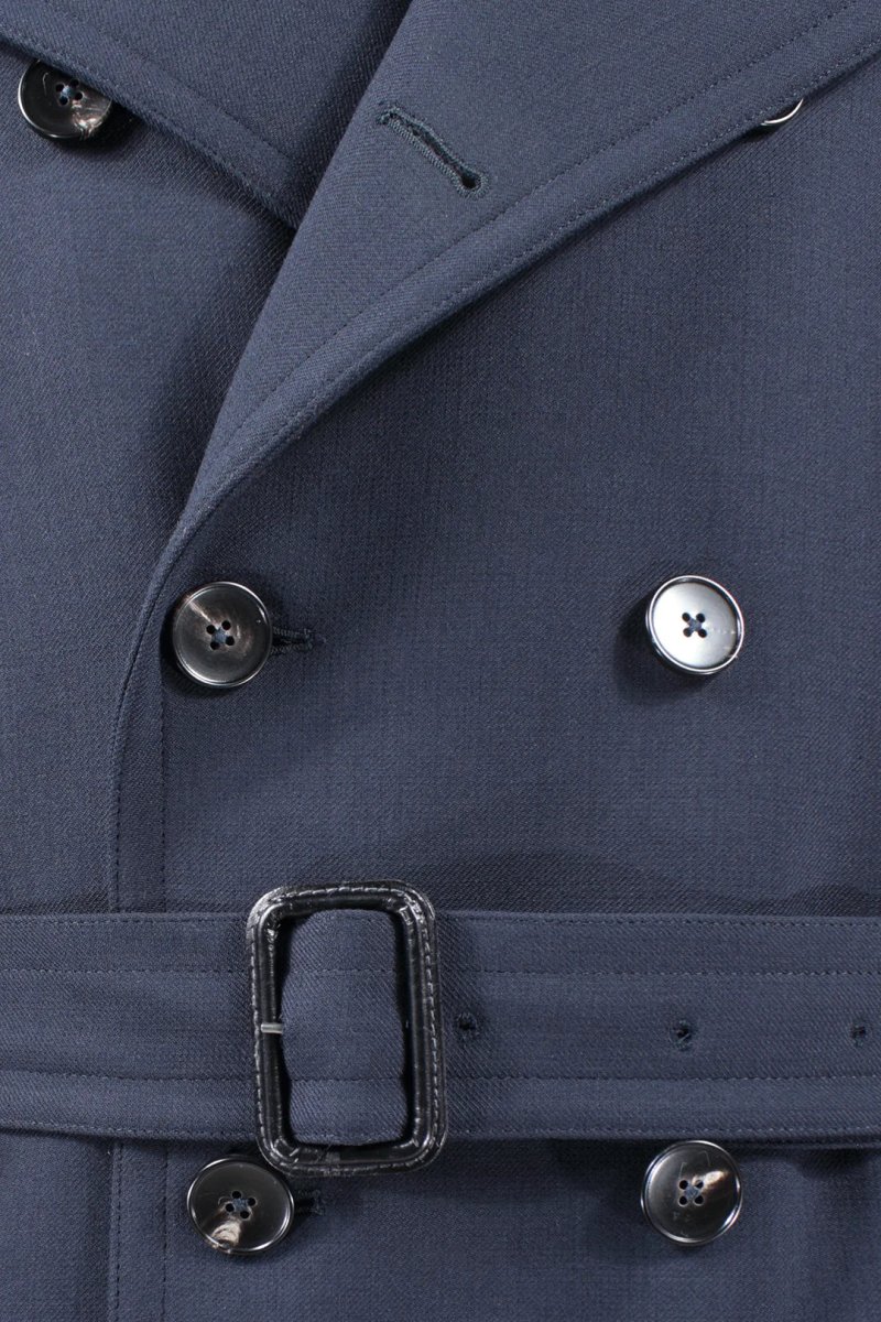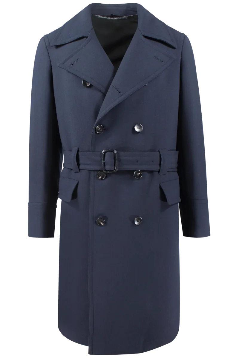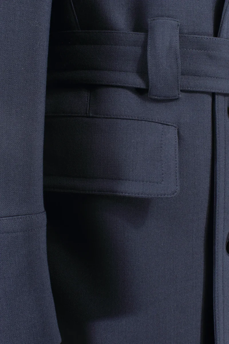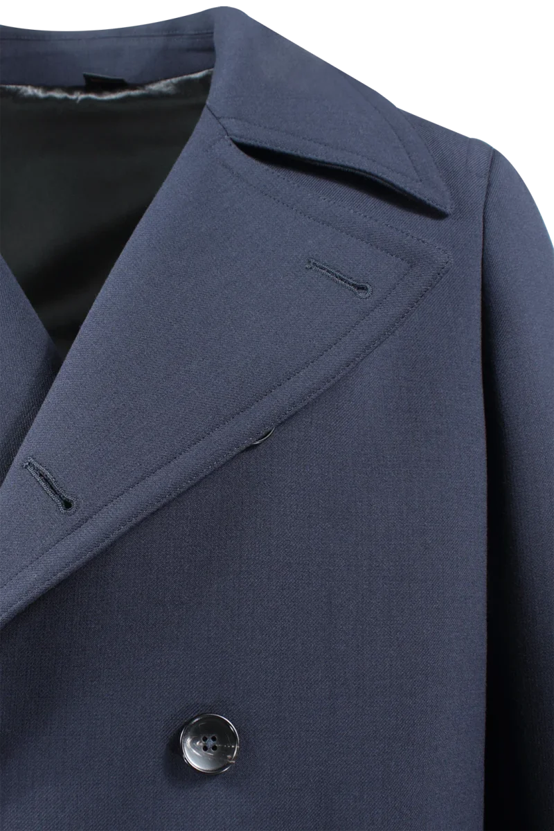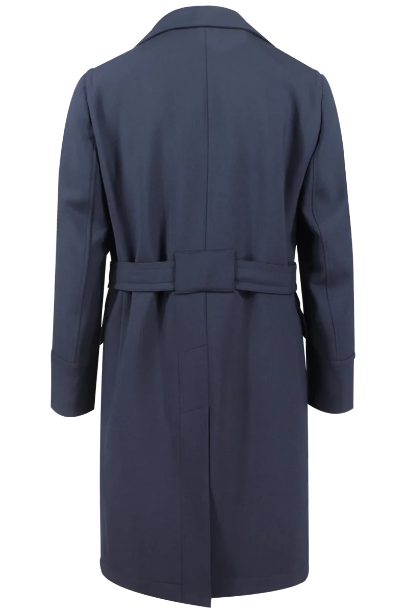 Cappotto doppiopetto con cintura in lana blu