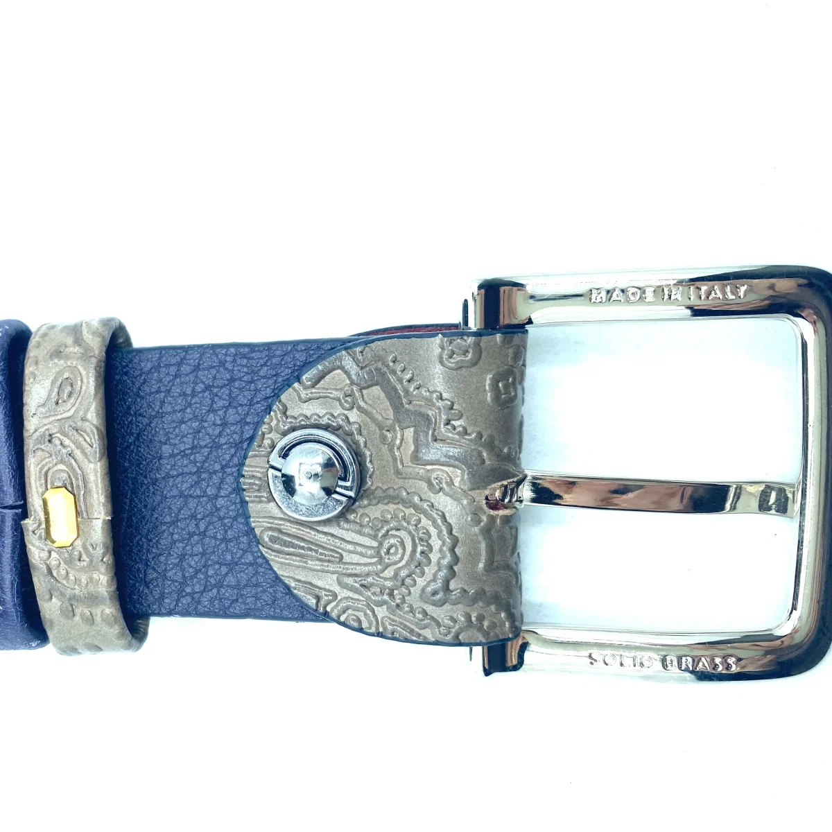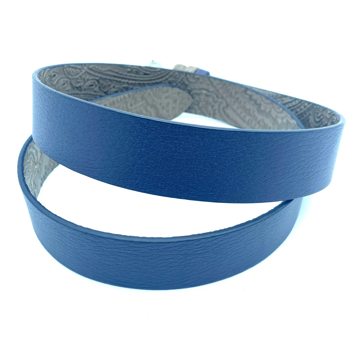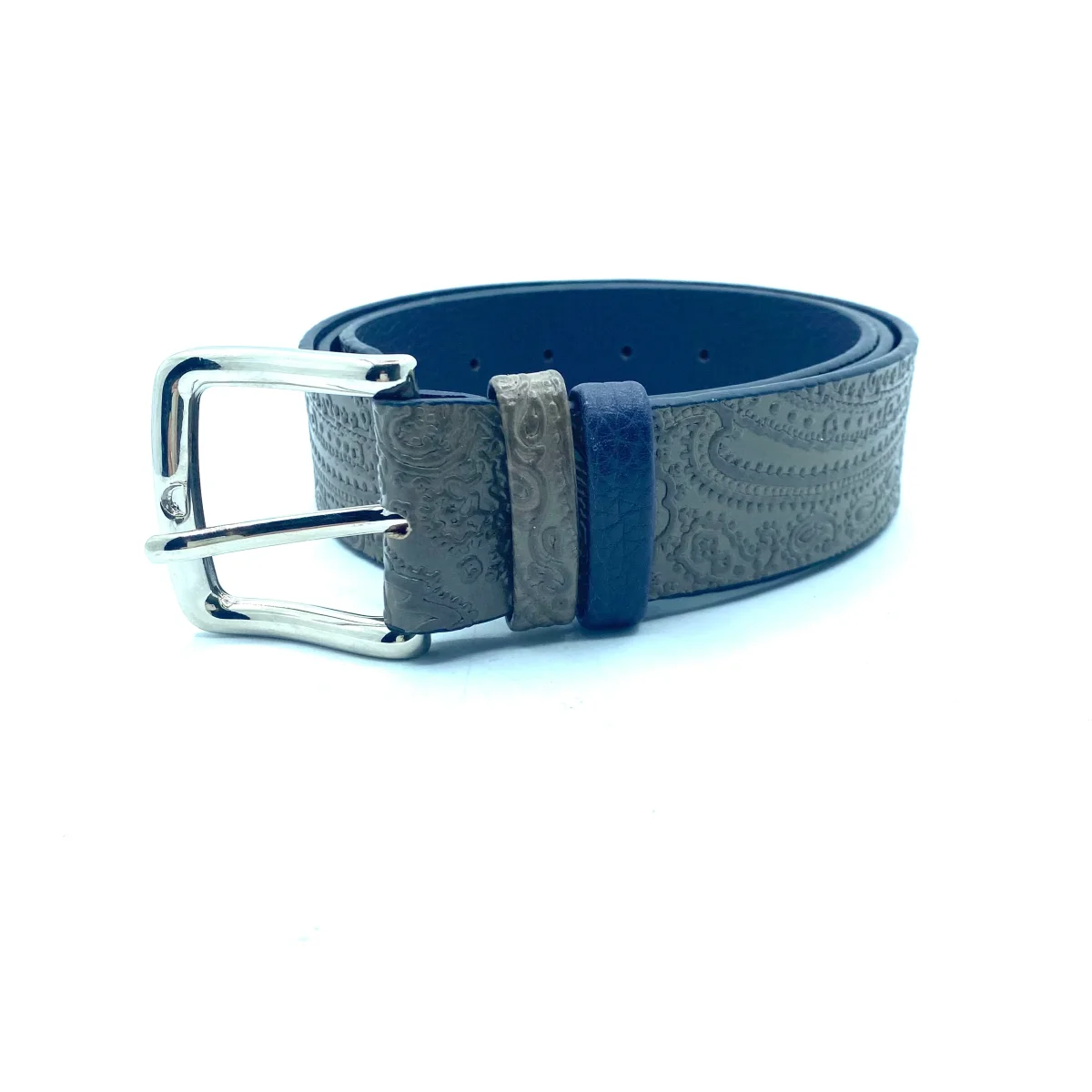 cintura artigianale reversibile unisex in vera pelle con stampa in bassorilievo grigia o viola. Fibbia in metallo Cintura accorciabile altezza 4 cm Taglia 115/130 Prodotto di qualità artigiana. Made in Italy