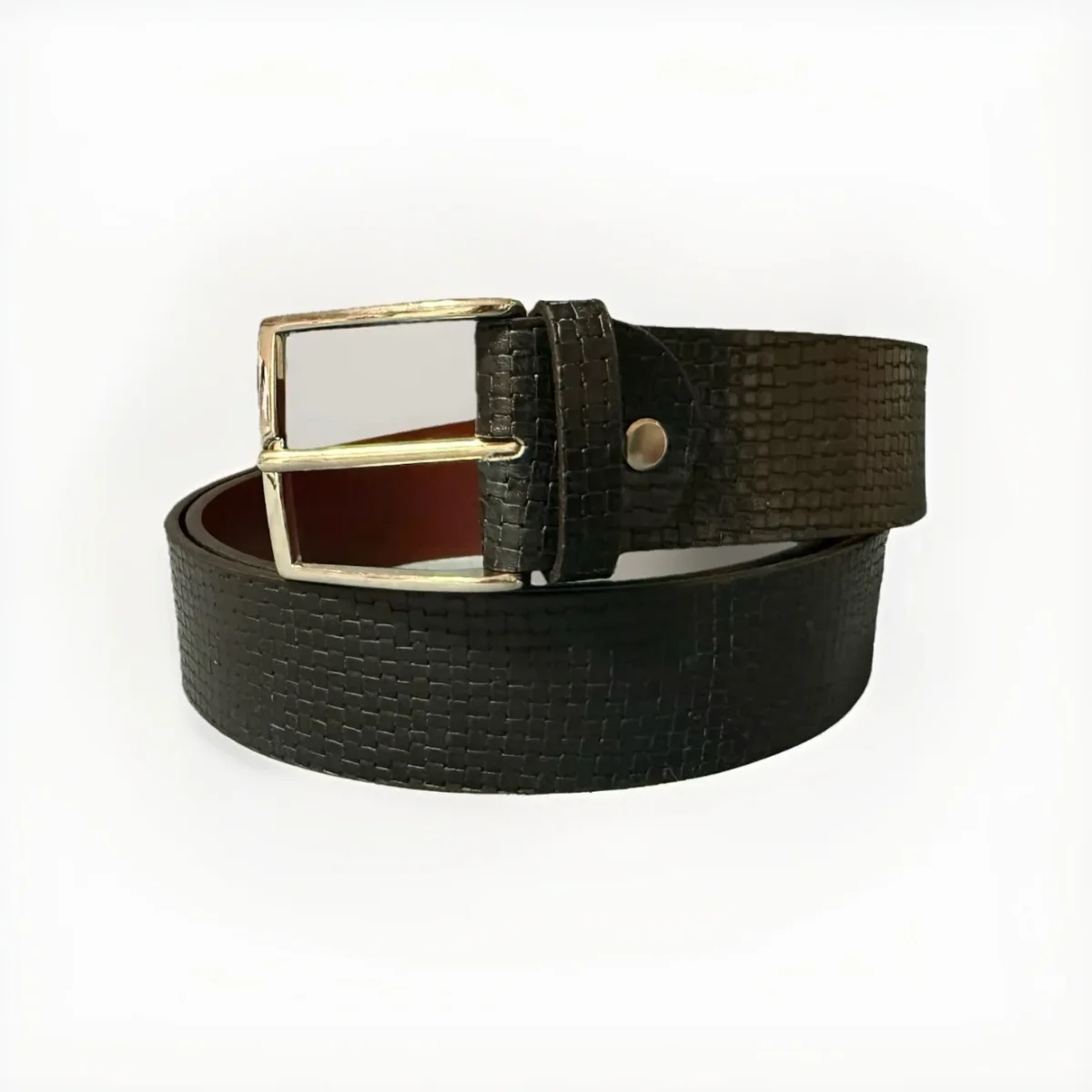 CINTURA ARTIGIANALE VERA PELLE STAMPA INTRECCIO BLU SCURO