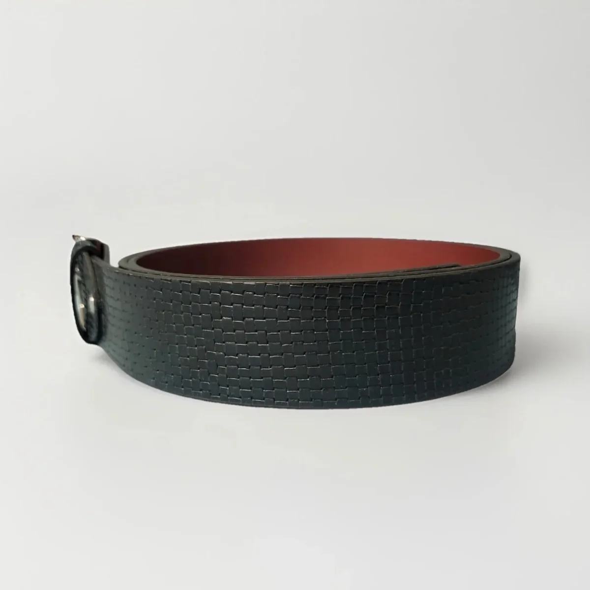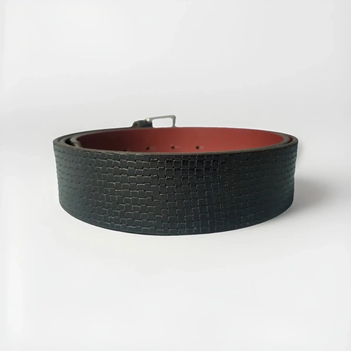 Bellissima cintura artigianale in vera pelle stampa intreccio di colore blu scuro