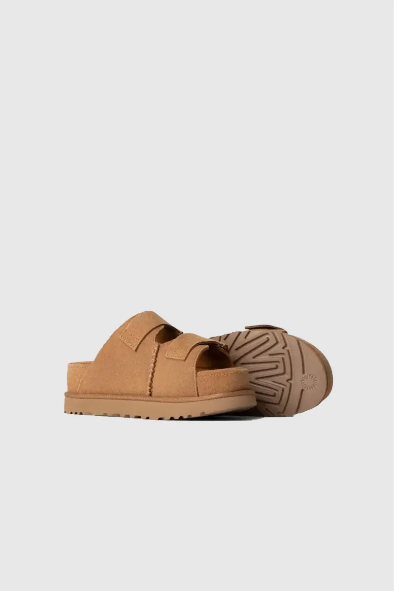 Svetta sul plateau con il massimo del comfort. Abbiamo realizzato le ciabatte Goldenstar Hi con una suola in EVA da canna da zucchero superleggera che offre supporto in ogni situazione. La suola interna in schiuma a doppia densità è un vero lusso per il piede, mentre la soletta in tessuto e la fodera in mesh garantiscono il massimo comfort. La vestibilità può essere regolata con i due cinturini sulla tomaia in pelle scamosciata con imbottitura. Il modello è rifinito con la tradizionale doppia cucitura e il bordo iconico.Composizione:Tomaia imbottita in pelle scamosciata