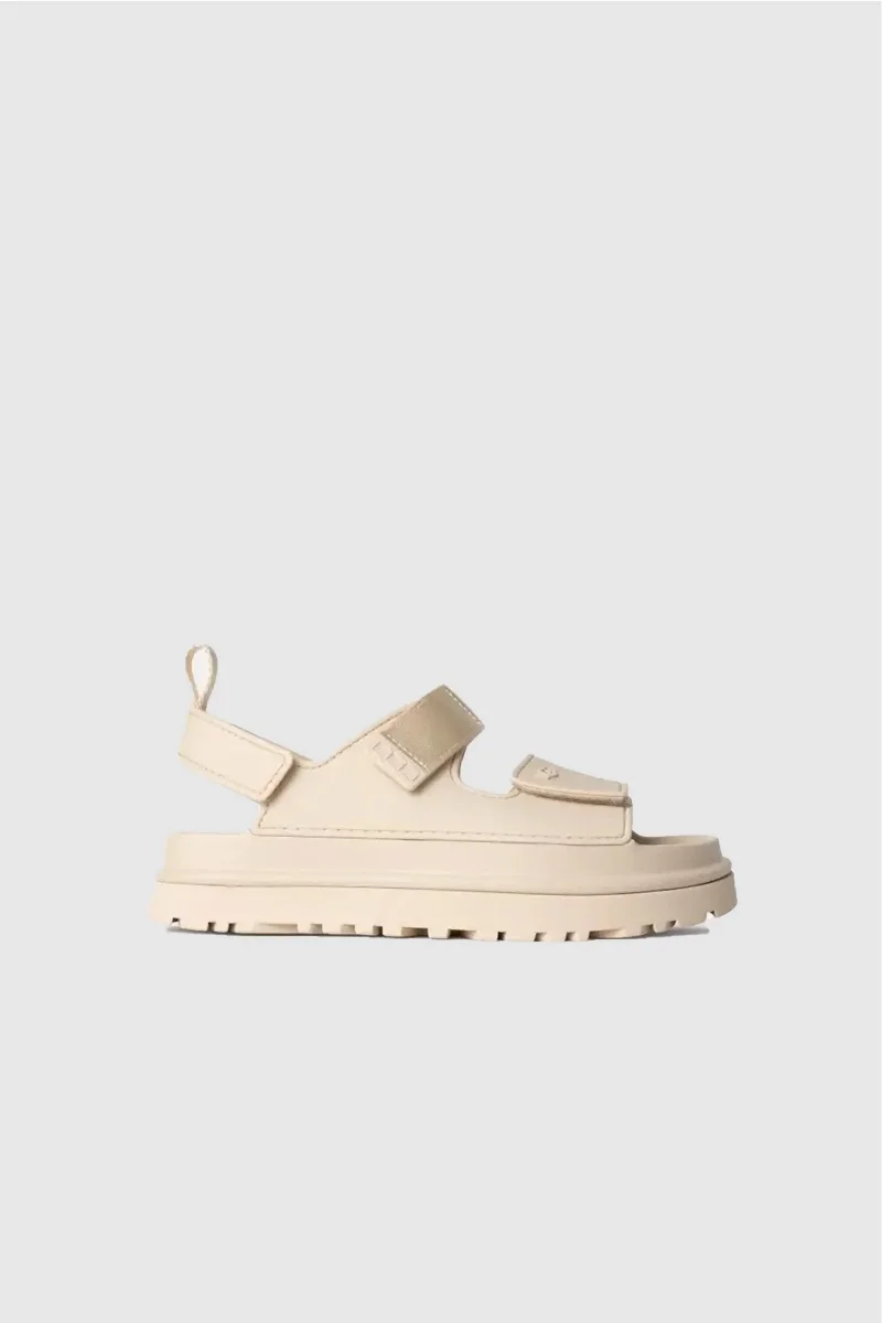 Goditi tutto il piacere che regalano i sandali GoldenGlow. Sono il nostro modello per chi ama farsi notare. Ti basta infilarteli per apprezzarne l’estrema leggerezza ed essere pronta a uscire. La sicurezza fa parte del tuo carattere, ma GoldenGlow ti darà un po’ di audacia in più. GoldenGlow è un sandalo completamente regolabile. Questo modello è realizzato in EVA da canna da zucchero, che offre supporto ed elasticità ed è adatto tanto alle giornate piovose quanto a quelle soleggiate. Il plateau con suola a carrarmato e la suola interna aderente offrono tutta la dinamicità che promettono.Composizione:Tomaia in TPU, tirante posteriore realizzato con fibre di poliestere riciclato (100%)