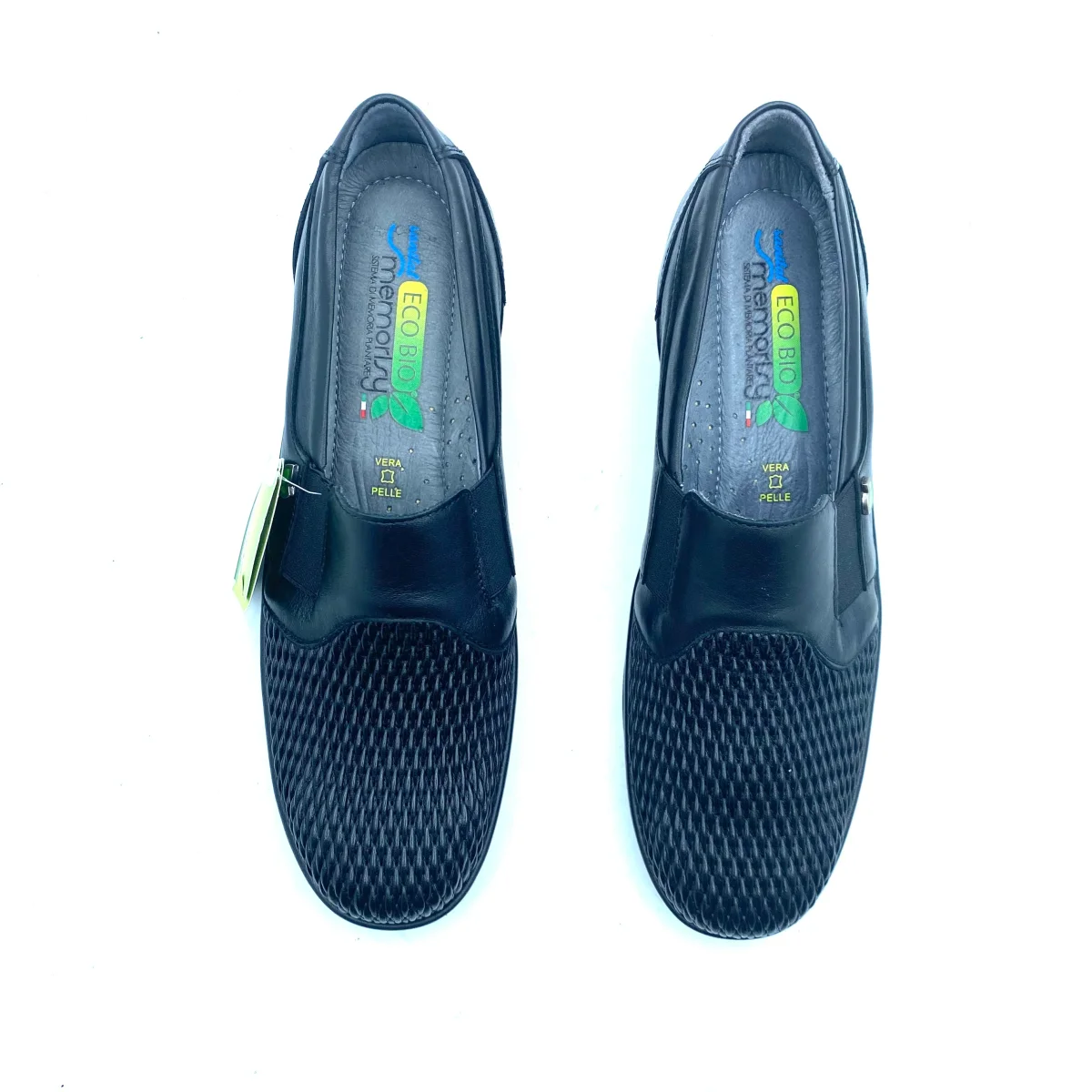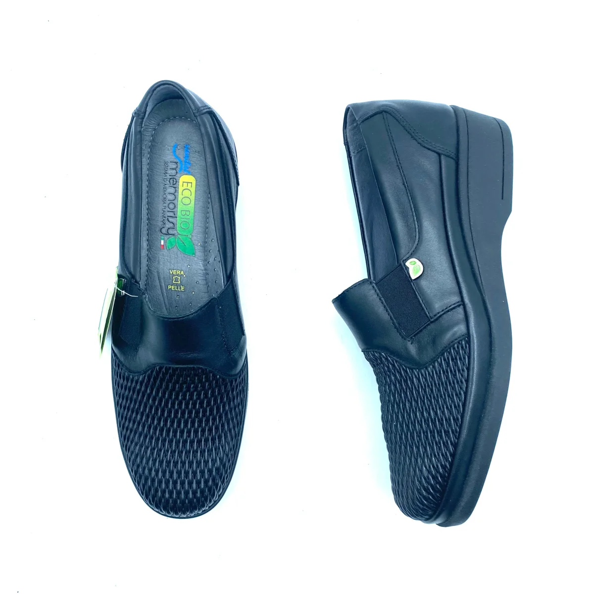 ECO BIO MEMORY moda comoda in vera pelle di colore nero con elastici laterali per adattarsi al piede