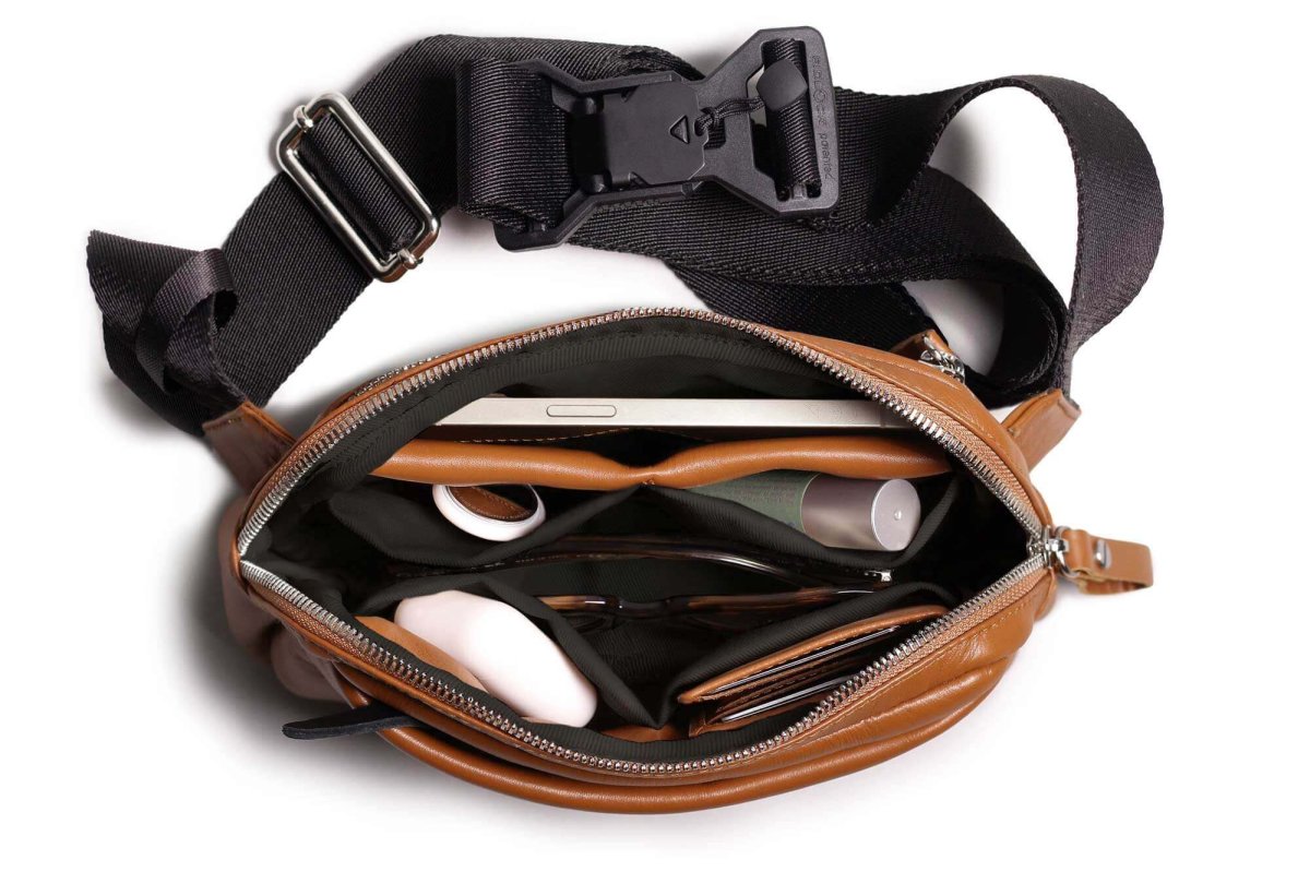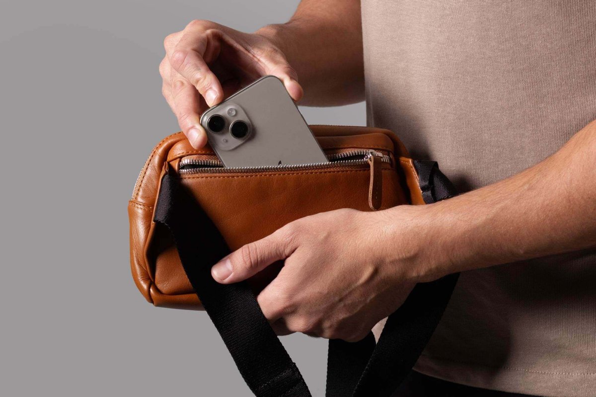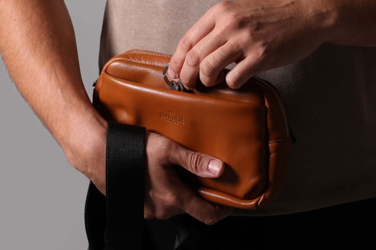 • Relaxed and Compact Design.• Theft Deterrent Pull Tab.• Secure Magnetic clasp.• Comfortable Adjustable Carry Strap.• 2L Capacity.• Perfect for phones, keys, sunglasses, AirPods, passports, wallets, A6 notepads, cords and more.• Soft fabric lining with leather accents.• Expertly handcrafted by us, in our workshop in Spain.• Made With Rich Full Grain leather.
