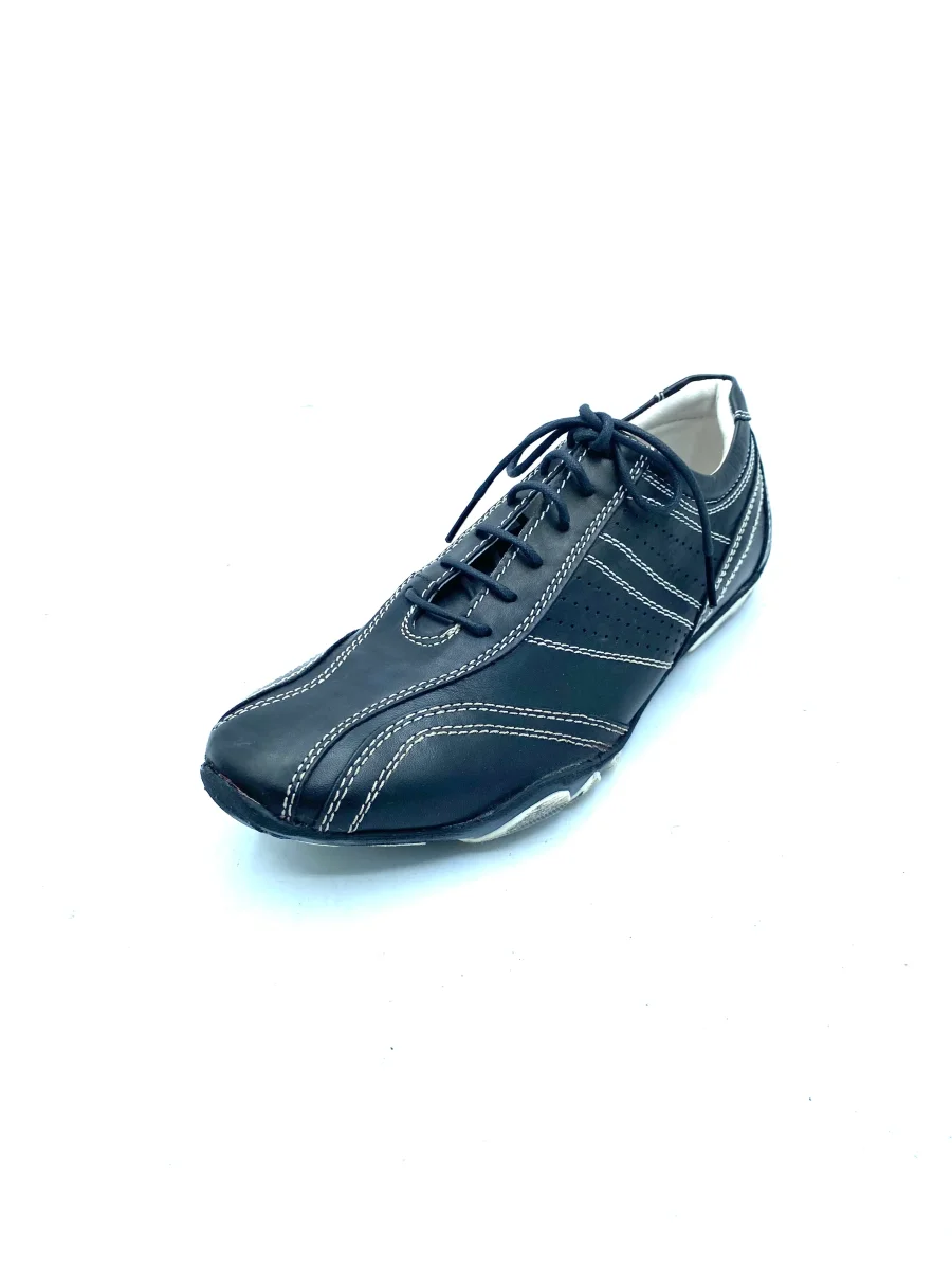 Stringate sportive da uomo color nero in vera pelle liscia, interno in pelle