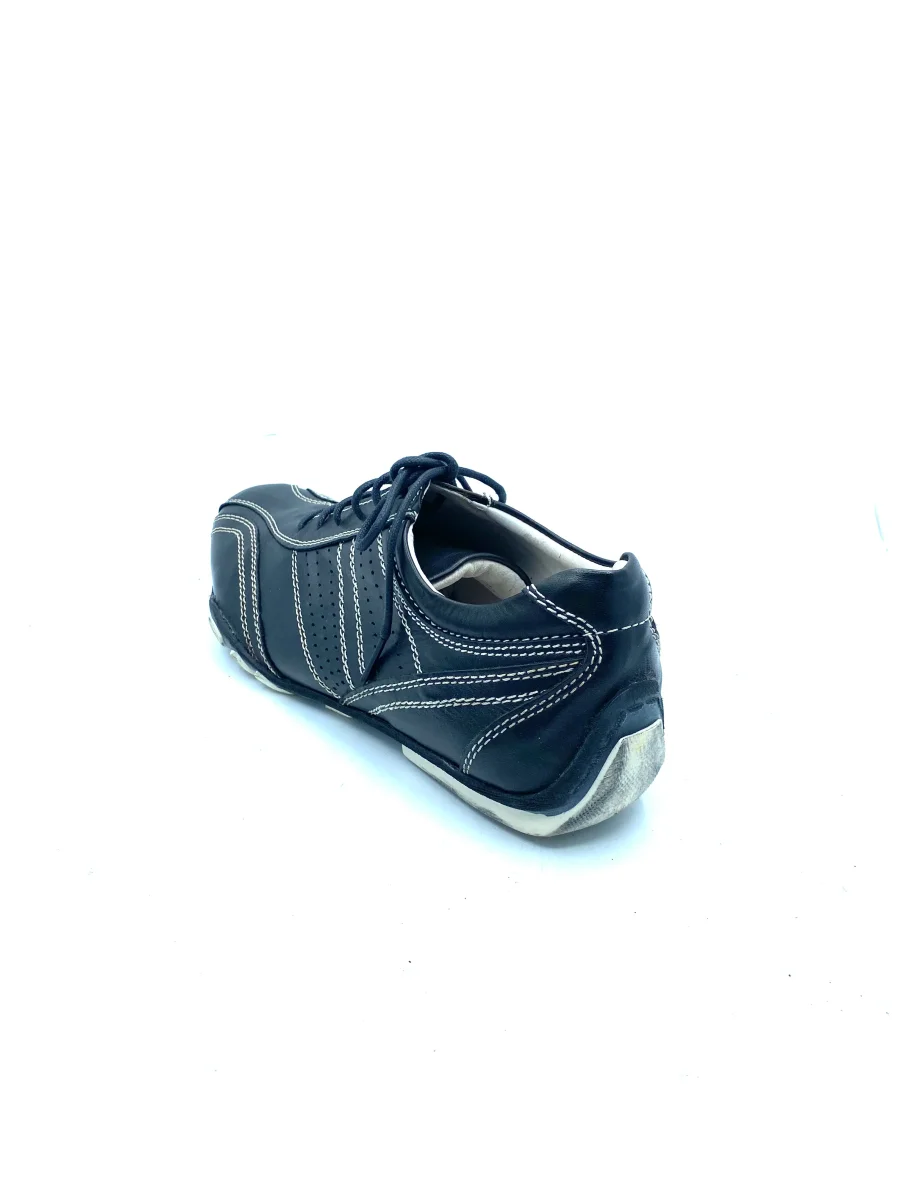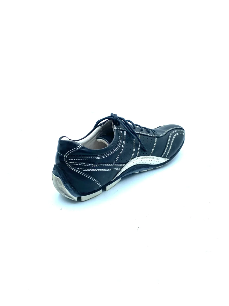 Stringate sportive da uomo color nero in vera pelle liscia, interno in pelle Prodotto italiano, sinonimo di qualità e creatività. Numero 40 Lunghezza piede 26,5 cm Le eventuali diversità di colore e difformità del pellame rappresentano una naturale caratteristica dei materiali impiegati Calzature realizzate con pellami naturali delle migliori qualità e rifinite con procedimenti artigianali. […]