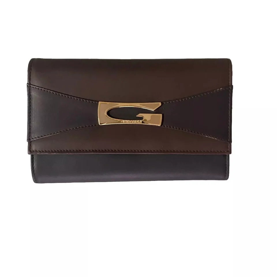 Portafoglio donna marrone/marrone scuto in vera pelle con logo GHERARDINI in metallo chiuso con bottone a pressione