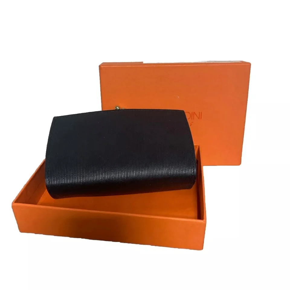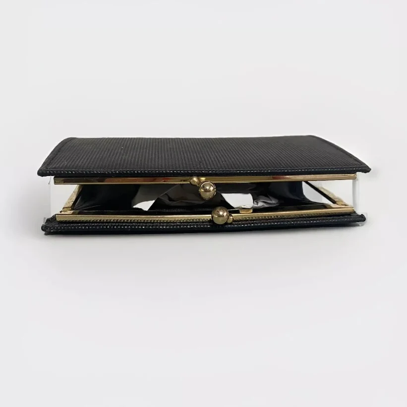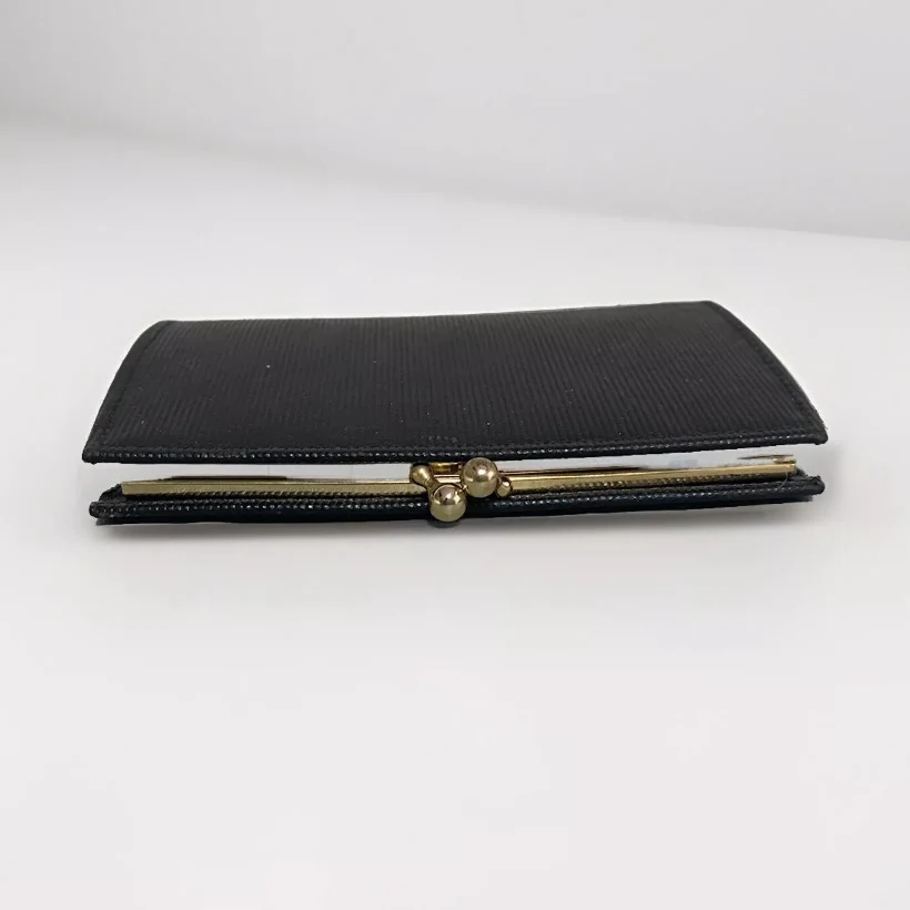 Portamonete piatto nero donna realizzato in goffrato Elegante è funzionale Chiusura clic clac Misure 13 x 8 cm Made in Italy